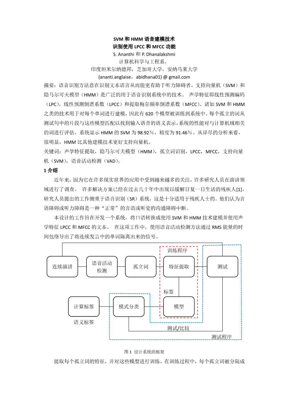 SVM和HMM语音建模技术识别使用LPCC和MFCC功能外文翻译资料