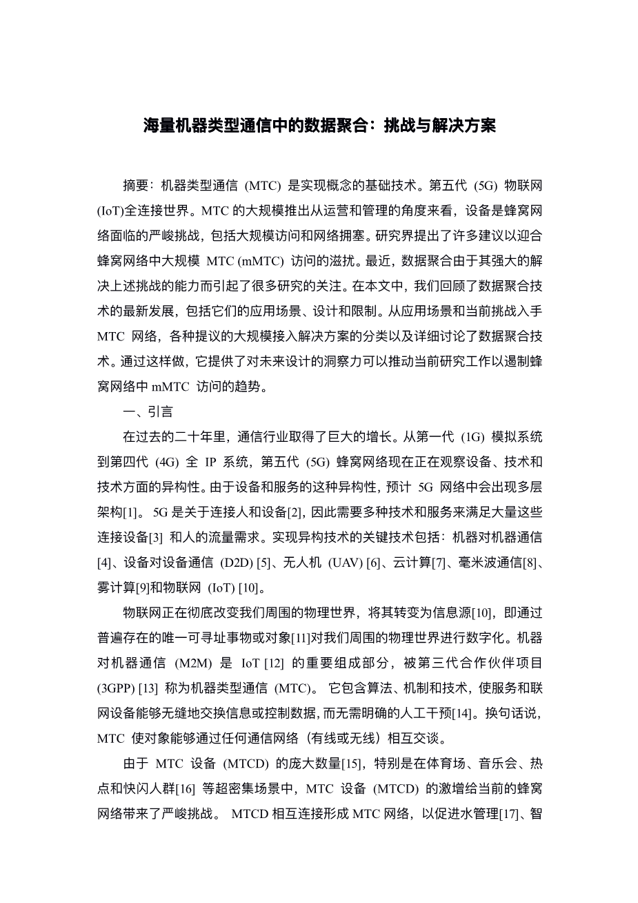 海量机器类型通信中的数据聚合:挑战与解决方案外文翻译资料