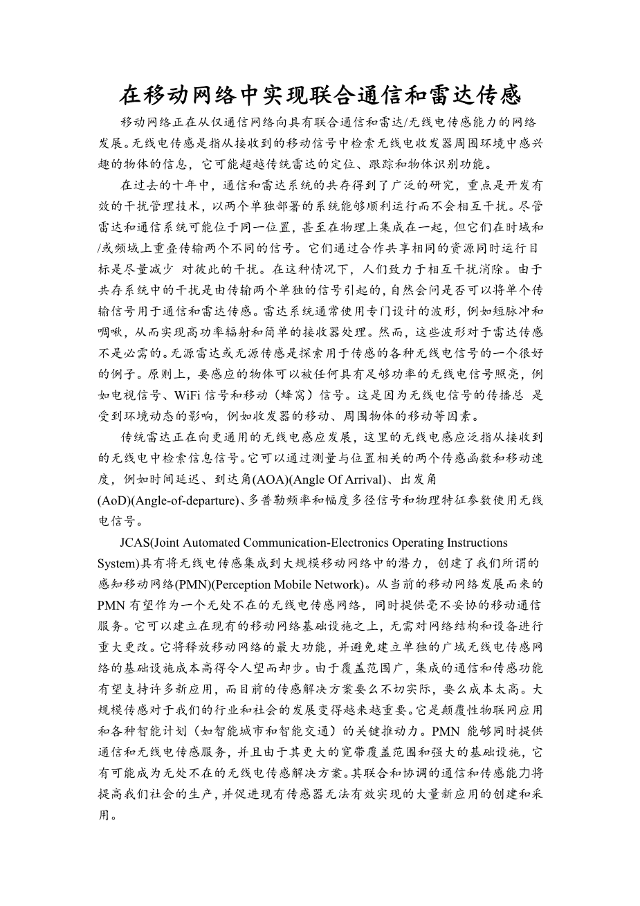 在移动网络中实现联合通信和雷达传感外文翻译资料