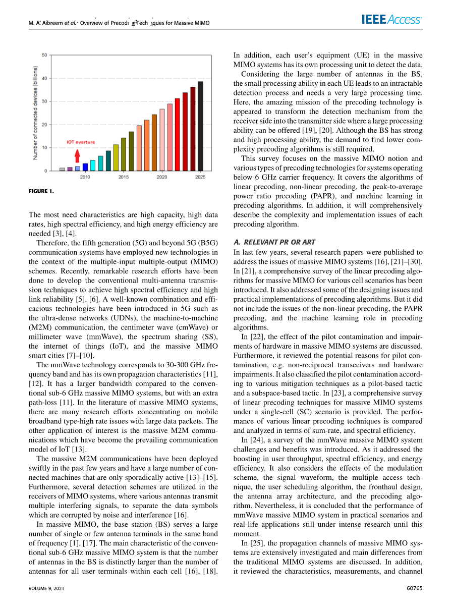 在过去的几年里,发表了几篇研究论文来解决大规模MIMO系统[16],[21]-[30]的问题。在[21]中,介绍了对各种单元场景下的大规模MIMO的线性预编码算法的全面调查。并解决了预编码算法的一些设计问题和实际实现问题。但它不包括非线性预编码、PAPR预编码和机器学习在预编码算法中的作用等问题。