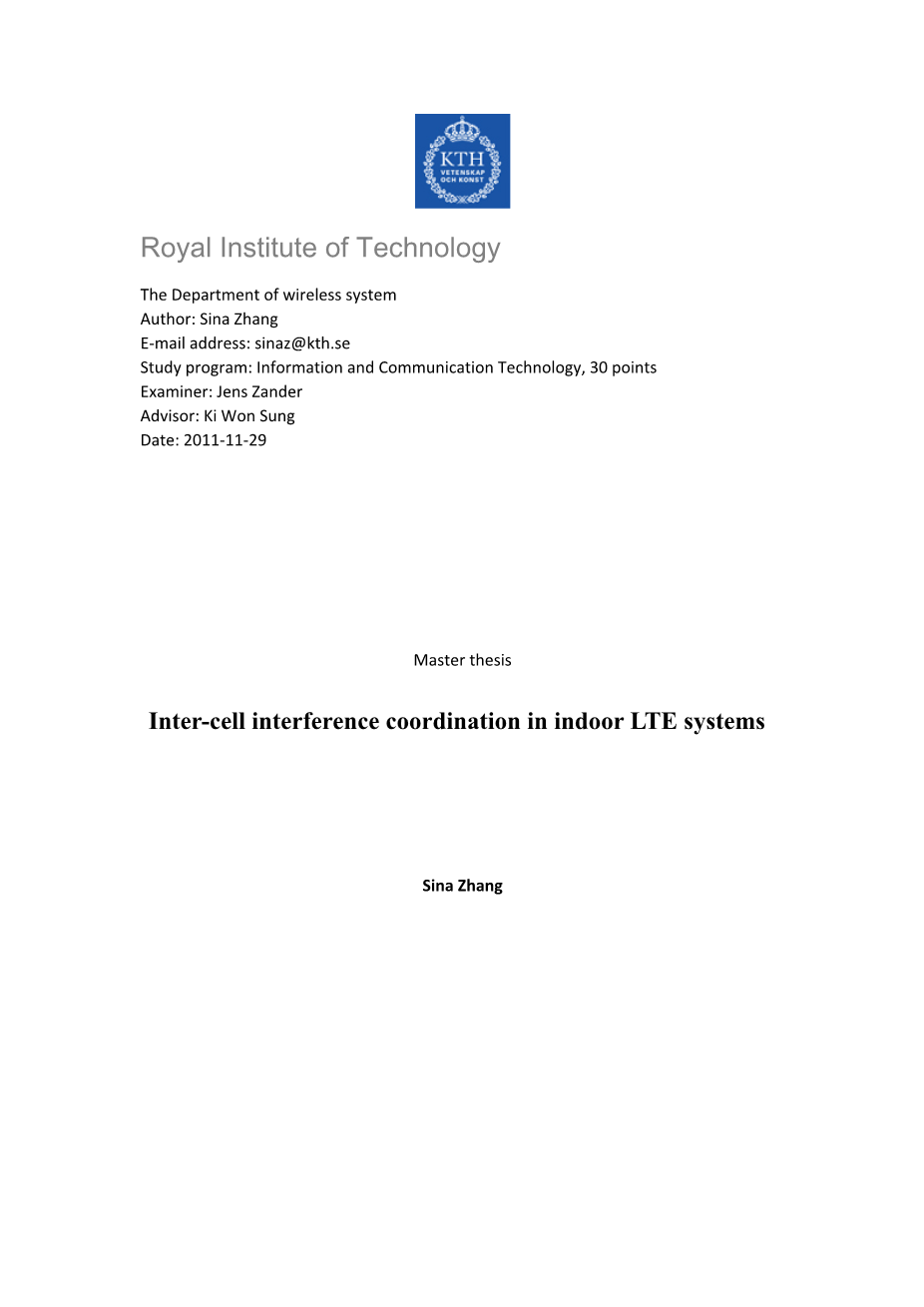 第1章描述了背景,目的,范围,目标和意义。第2章包含了相关工作,包括理论基础,不同现有小区间干扰协调方案的对比等。第3章提出了几种小区间干扰协调方案。第4章显示了仿真模型的设计。它包括系统设计,模型,计算过程和参数等。在第5章中给出了结果。第6章是关于项目的讨论,以及结论和未来可能的工作