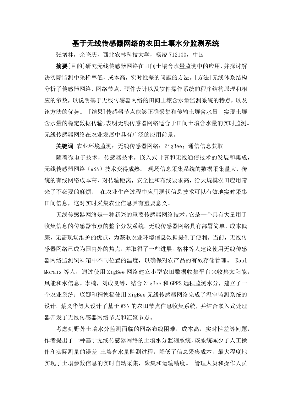 基于无线传感器网络的农田土壤水分监测系统外文翻译资料