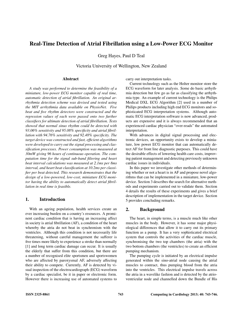 随着数字信号处理和电子设备的进步,如今存在一个机会去开发一个小型的,低功耗的心电图监测系统,其可以达到自动检测前端心房颤动的目的。其在降低医疗费用,管理病人和检测以前未知的心脏问题上都有着理想的效果。