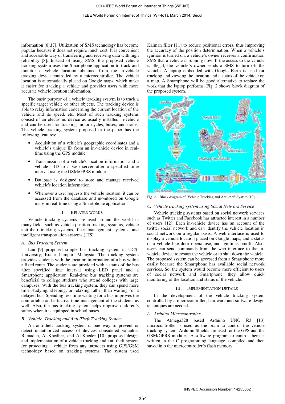 防盗追踪系统是防止或检测被认为有价值的设备未经授权访问的一种方式。 Ramadan,Al-Khedher和Al-Kheder [10]提出了使用基于跟踪系统的GPS / GSM技术来保护车辆免受入侵者侵害的车辆跟踪和防盗系统的设计和实施。 该系统使用卡尔曼滤波器[11]来减少位置误差,从而提高了位置确定的准确性。 当车辆点火开启时,车主会收到车辆现在正在运行的确认短信。 如果访问车辆是非法的,车主会发送短信关闭车辆。 嵌入Google Earth的笔记本电脑用于跟踪和查看地图上车辆的位置和状态。 智能手机将成为替代笔记本电脑性能的好替代品。 图2显示了所提出的系统的框图。