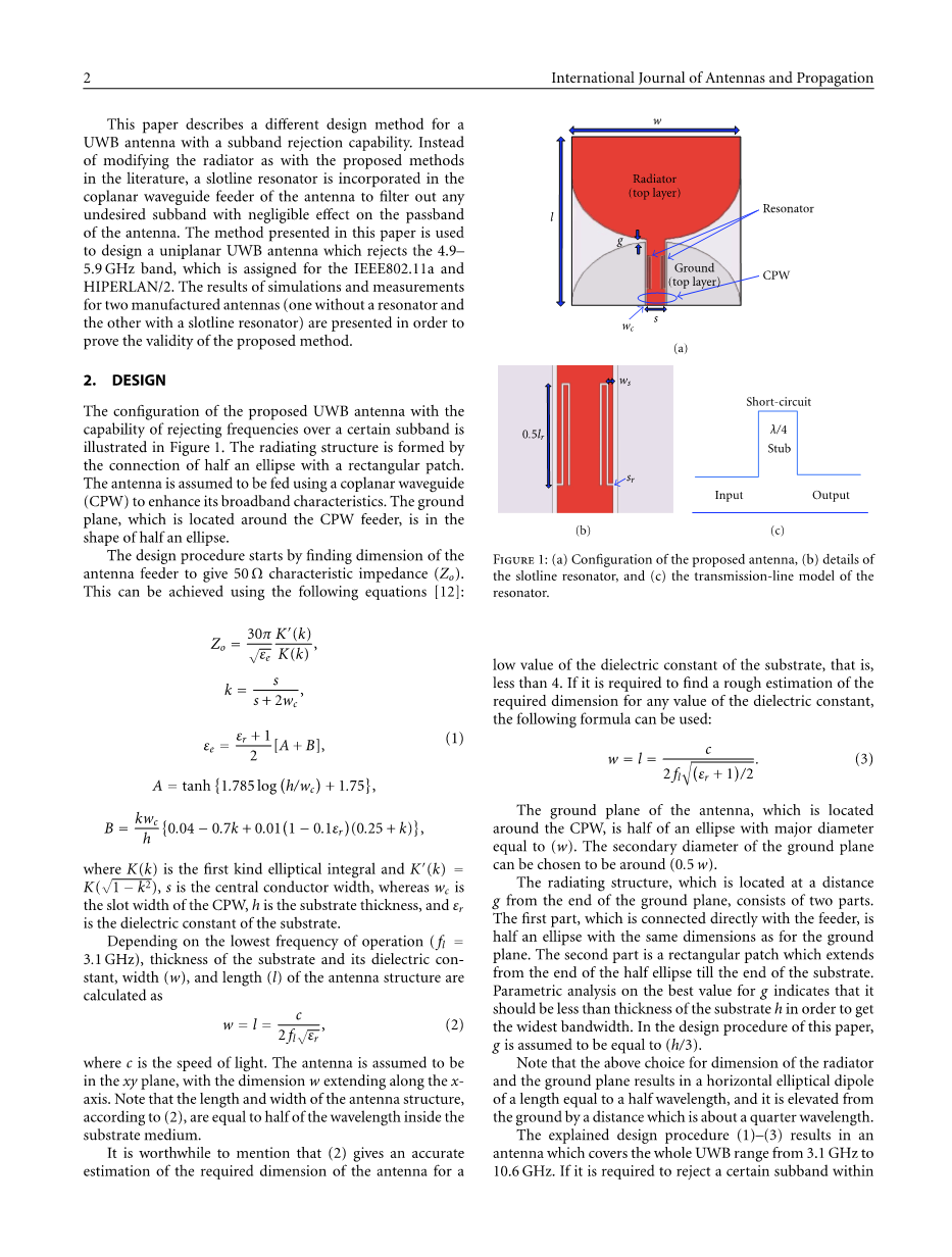 本文提出了一种具有带隙特性的紧凑超宽带天线的完整设计方法。子带抑制是通过在天线的共面波导馈线中加入一个槽线谐振器来实现的。为验证所提出的方法,设计了两个天线样本