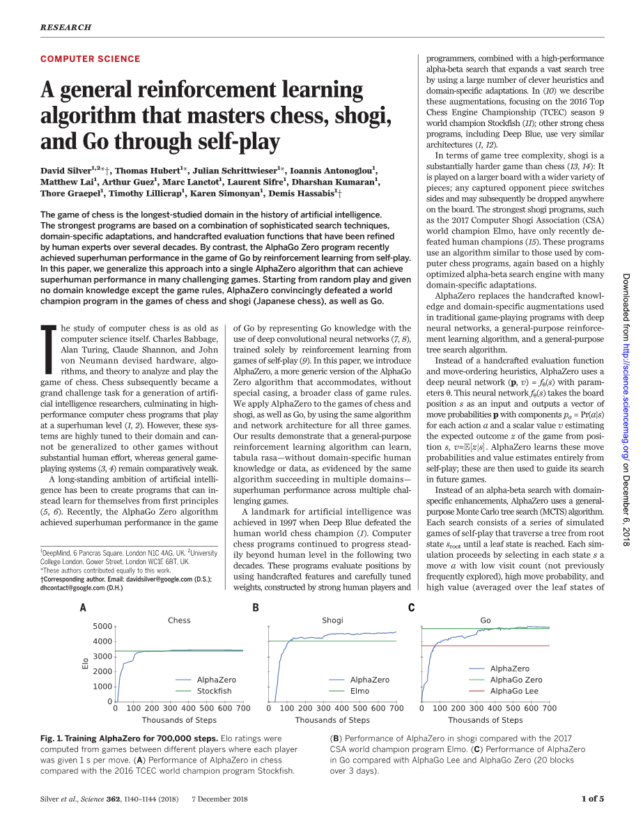 David Silver1,2*dagger;, Thomas Hubert1*, Julian Schrittwieser1*, Ioannis Antonoglou1, Matthew Lai1, Arthur Guez1, Marc Lanctot1, Laurent Sifre1, Dharshan Kumaran1, Thore Graepel1, Timothy Lillicrap1, Karen Simonyan1, Demis Hassabis1dagger;