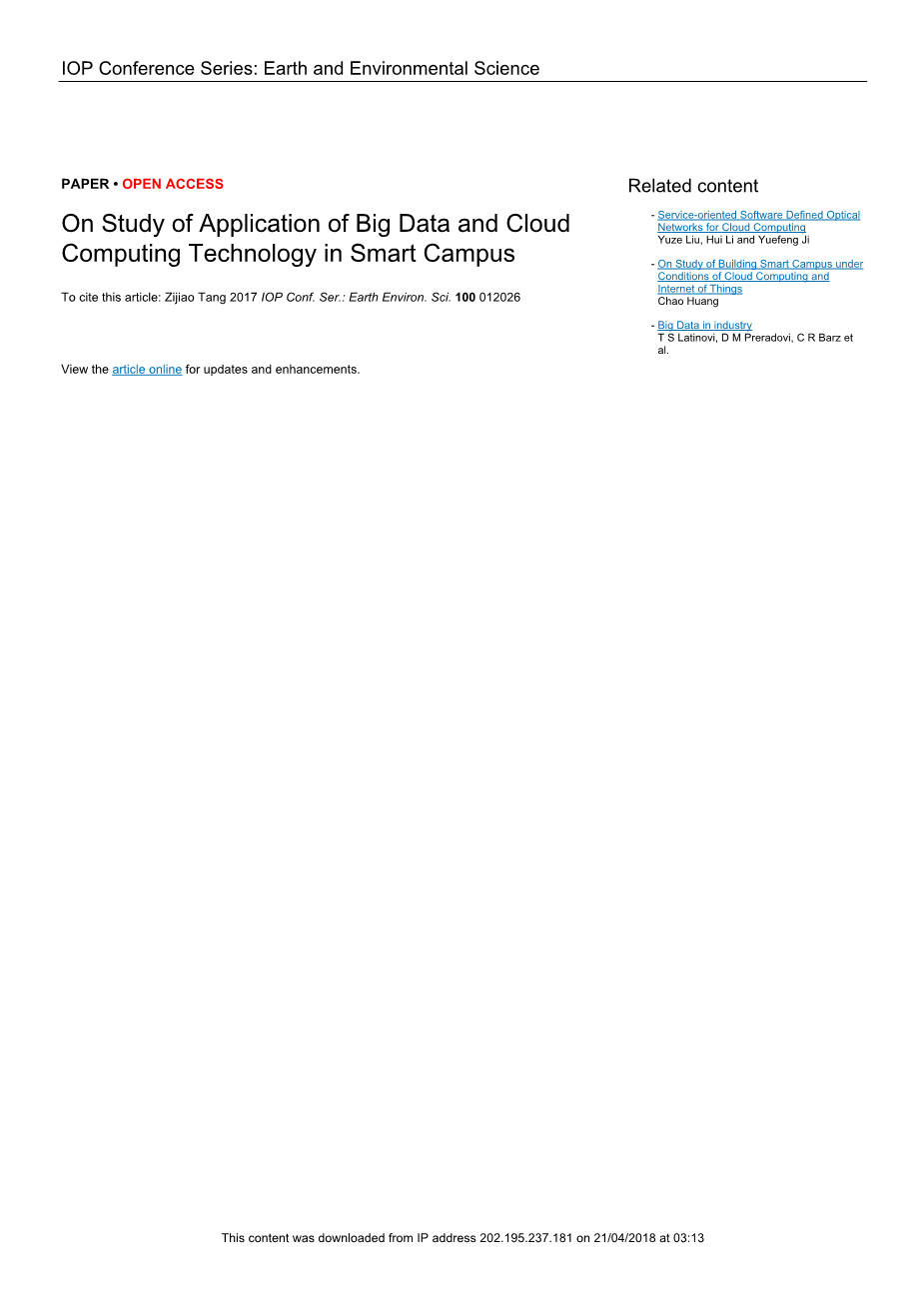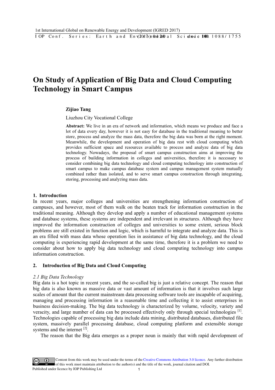 大数据与云应用的研究在智慧校园中的计算机技术外文翻译资料