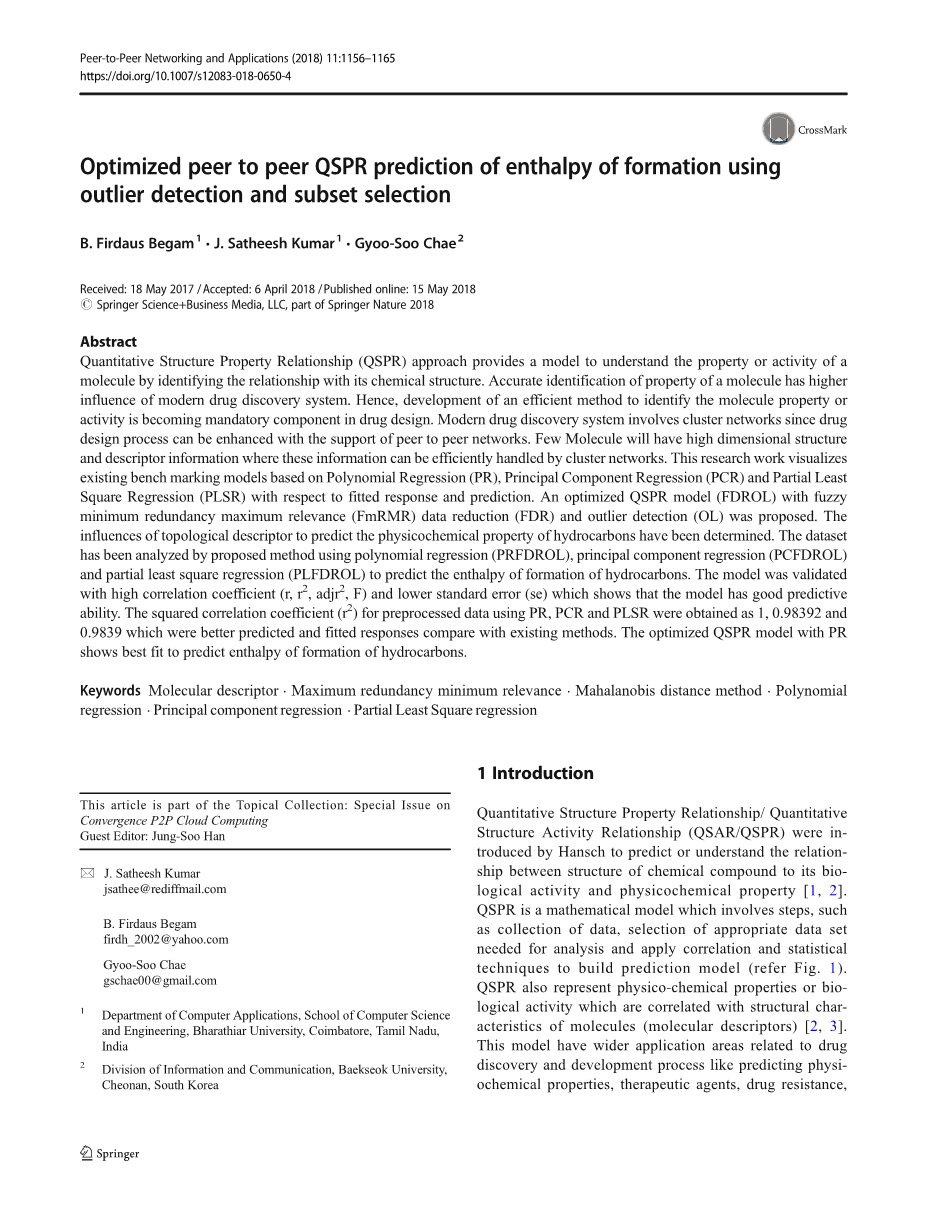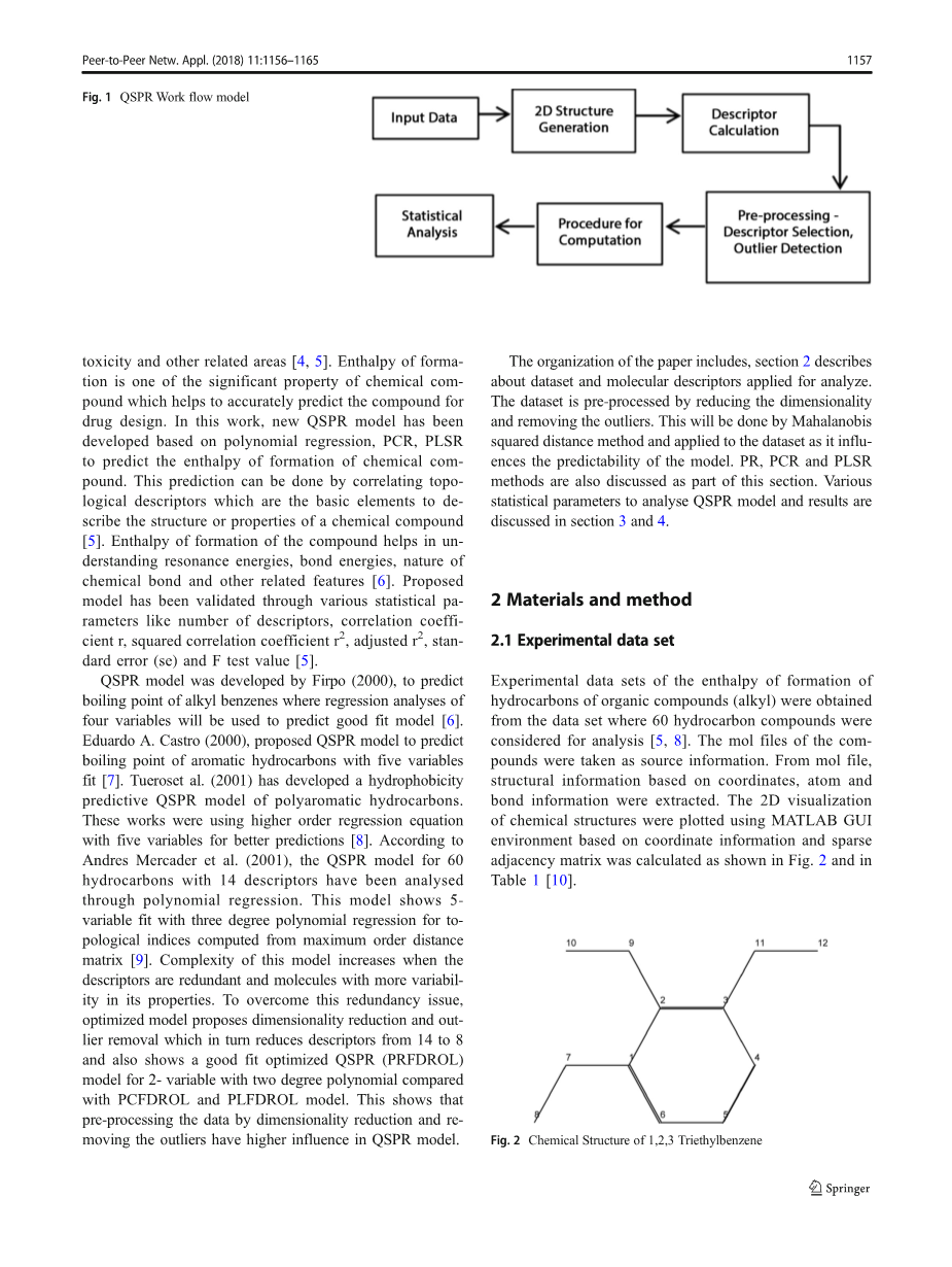 该论文的组织包括,第2节描述了应用于分析的数据集和分子描述符。通过减少维度和删除异常值来预处理数据集。这将通过Mahalanobis平方距离方法完成并应用于数据集,因为它影响模型的可预测性。 PR,PCR和PLSR方法也作为本节的一部分进行讨论。第3节和第4节讨论了分析QSPR模型和结果的各种统计参数。
