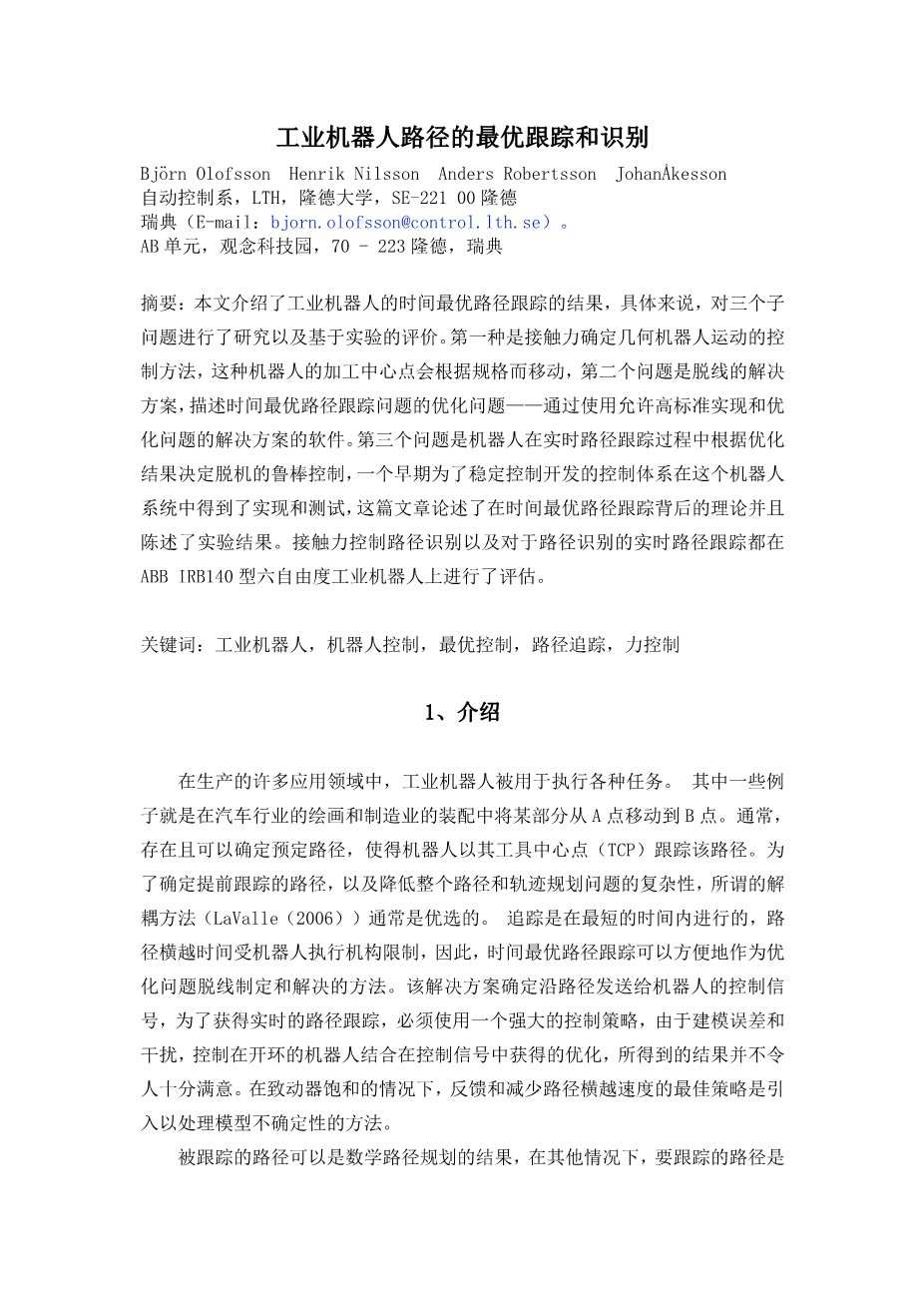 工业机器人路径的最优跟踪和识别外文翻译资料