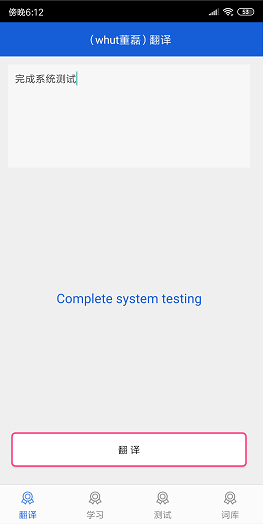 调试结果显示:在手机保持网络连接状态下,应用可以较快的对用户输入的汉语或者阿拉伯数字进行翻译。在单词学习方面,应用中的单词发音功能正常,到时学习提醒功能可以准时运行。