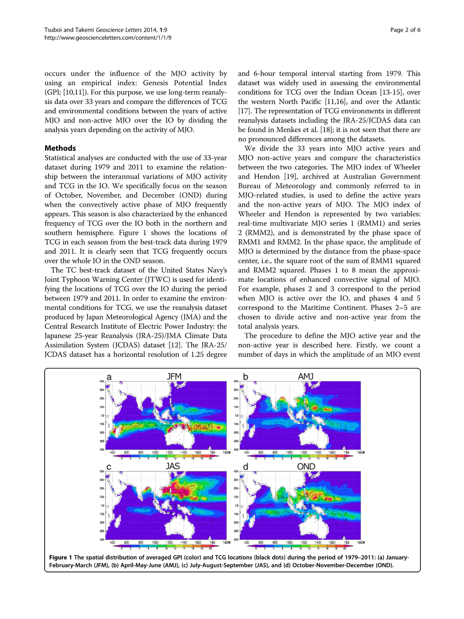 本研究利用33年的再分析资料,即JRA-25/JCDAS资料,研究了MJO和TCG在IO上的年际变化之间的统计关系,找出了在MJO活跃背景下影响下TCG变化的环境条件。环境条件由GPI诊断。OND是重点,因为在这个季节MJO活跃和TCG的数量都很高。我们将分析的时间划分为MJO活跃年和非活跃年,从而揭示了在MJO活跃的条件下TCG特有的环境条件。