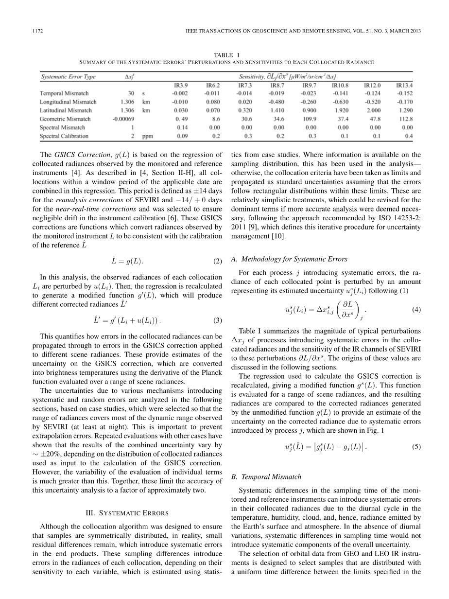 表1总结了在匹配辐射中引入系统误差的过程的典型扰动的大小以及SEVIRI的IR通道对这些扰动的灵敏系数。以下各节将讨论这些值的来源。
