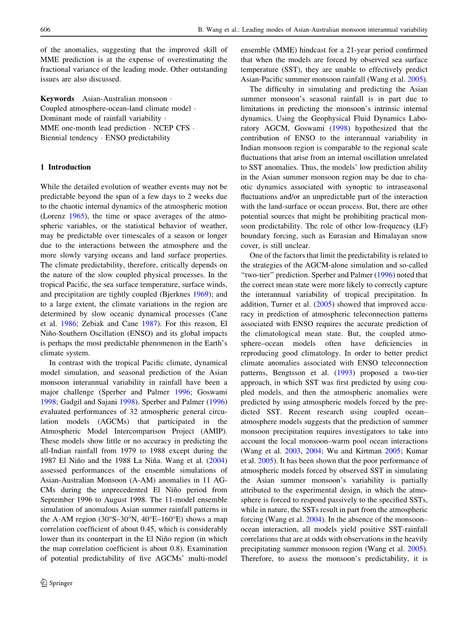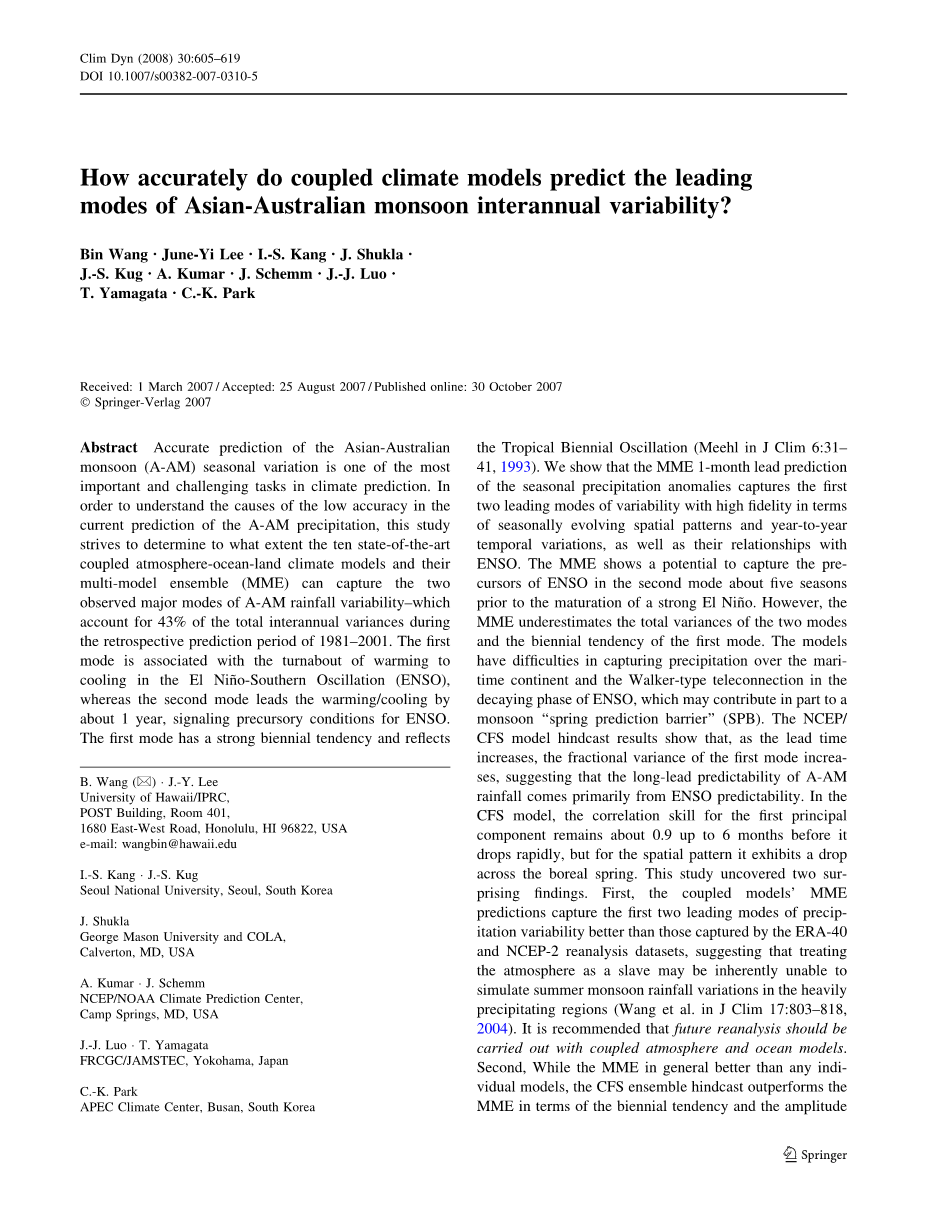 Bin Wang · June-Yi Lee · I.-S. Kang ·J. Shukla ·