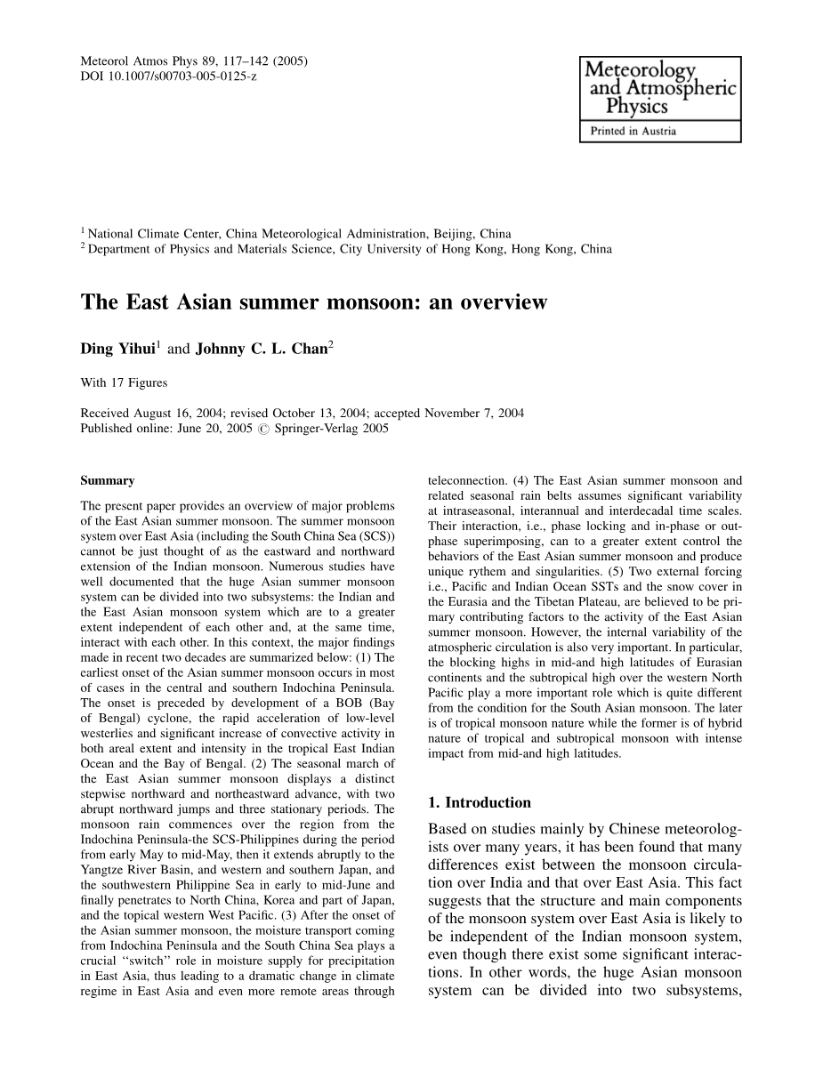 这些研究的一个主要推动力是南海季风实验 (SCSMEX, 1996–2001)和GEWEX亚洲季风实验(GAME, 1995-至今)(Lau et al, 2001; Yasunari, 2000; Ding and Liu, 2001; Ding et al, 2001; Ding et al, 2004)。除了第(7)项之外,本文将对上述问题的主要成果和结论进行全面回顾(审查)。