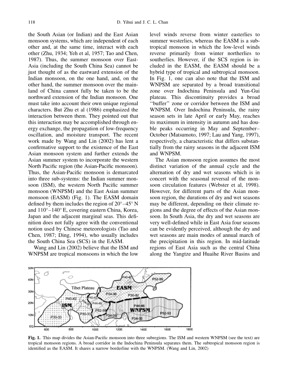图1.该地图将亚太季风区划分为三个次区域。印度夏季风(ISM)和西部西北太平洋夏季风(WNPSM)是热带季风区。中南半岛的宽广的走廊将它们隔开。副热带季风区被确定为东亚夏季风(EASM)。它与西北太平洋夏季风(WNPSM)的界线很小。(Wang and Lin, 2002)