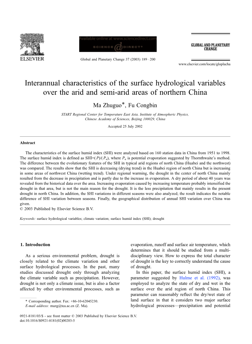 中国北方干旱和半干旱地区地表水文变量的年际特征外文翻译资料