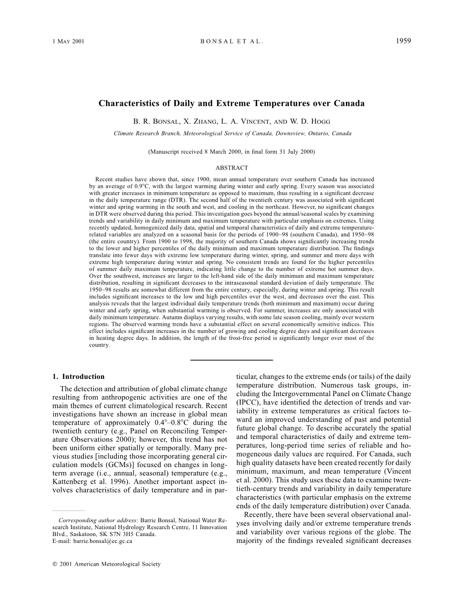B.R.BONSAL,X.ZHANG,L.A.VINCENT,AND W.D.HOGG
