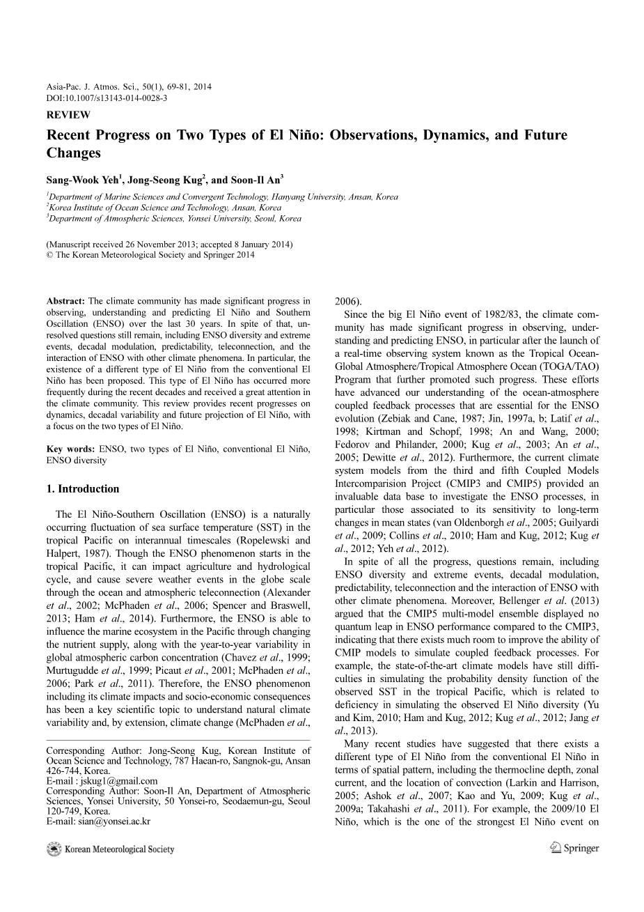 Sang-Wook Yeh1, Jong-Seong Kug2, and Soon-Il An3