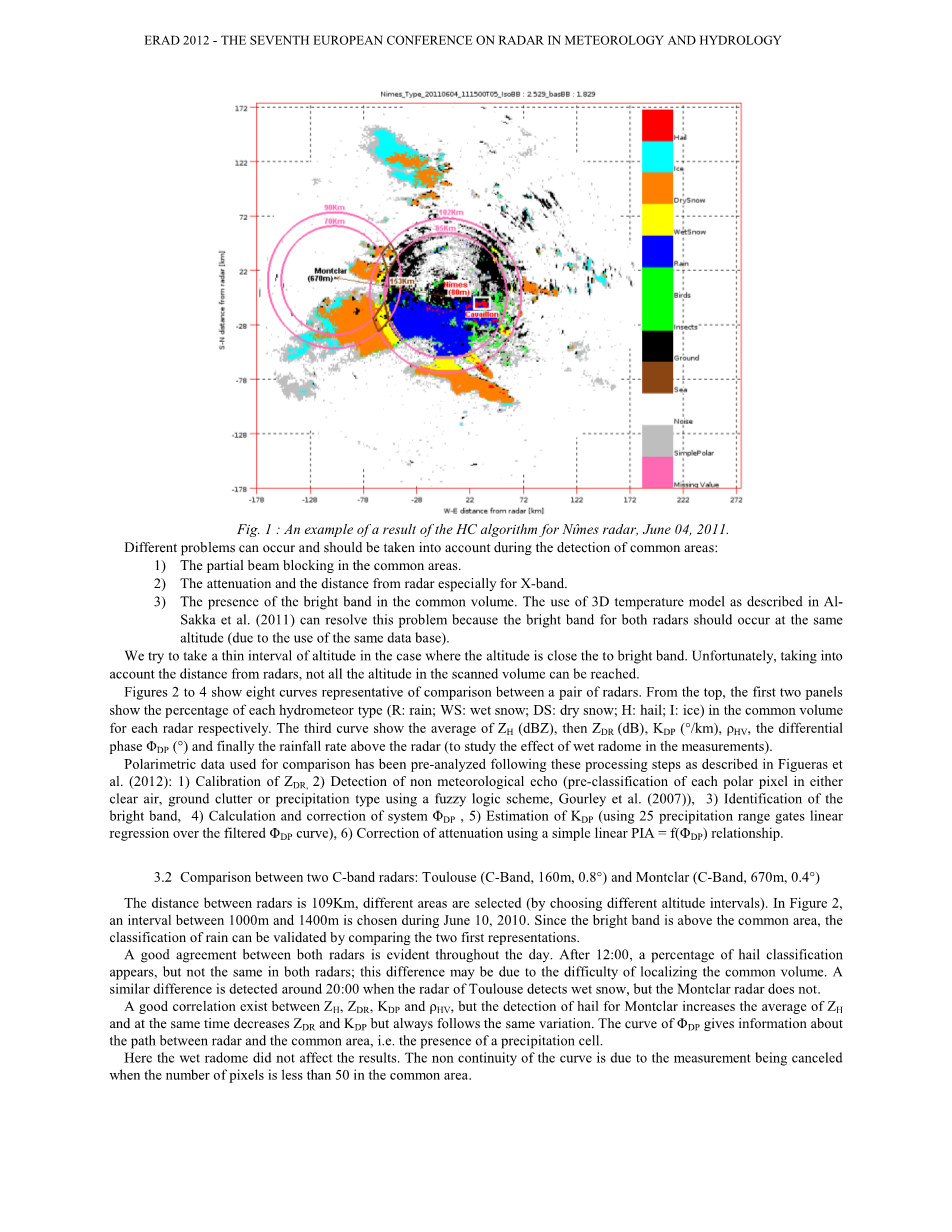 图1:Nimes雷达HC算法结果的一个例子,2011年6月4日。
