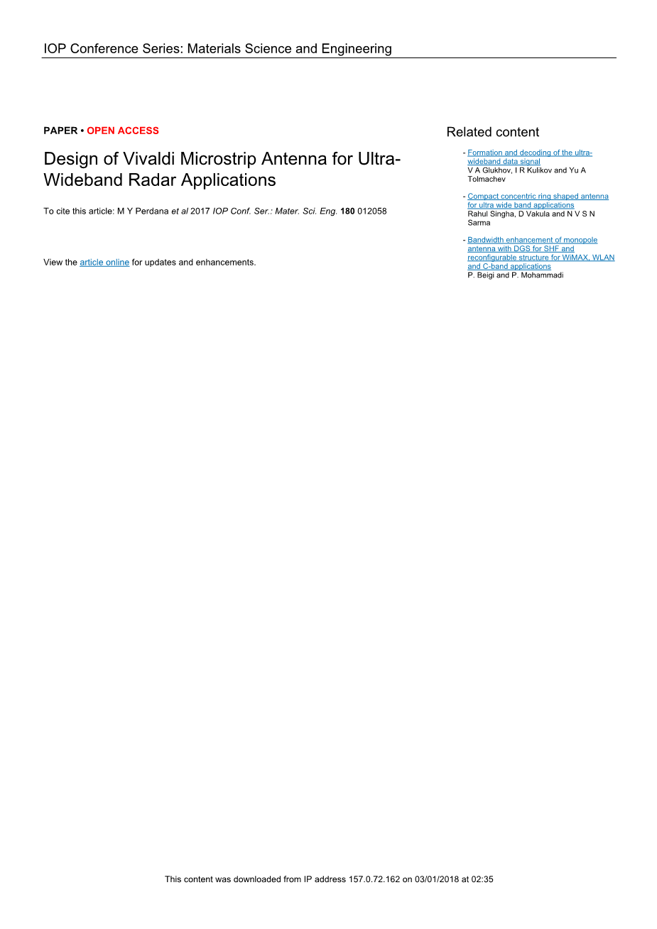 超宽带雷达的Vivaldi微带天线的设计外文翻译资料