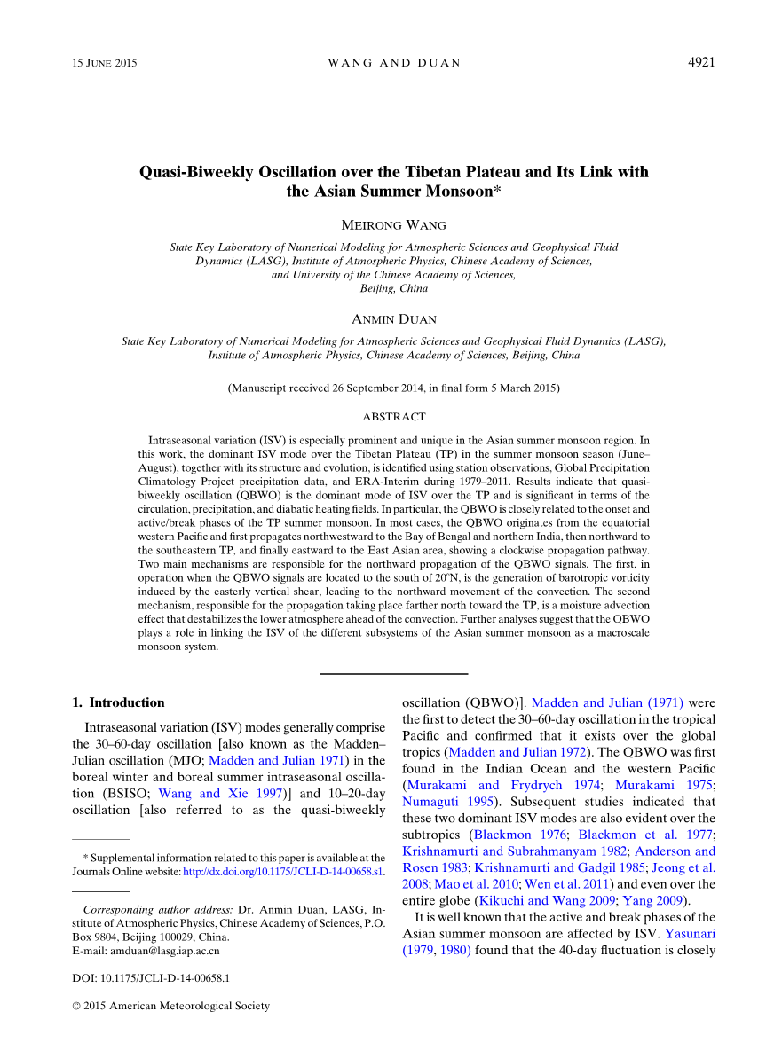 青藏高原准双周振荡及其与亚洲夏季风的关系外文翻译资料