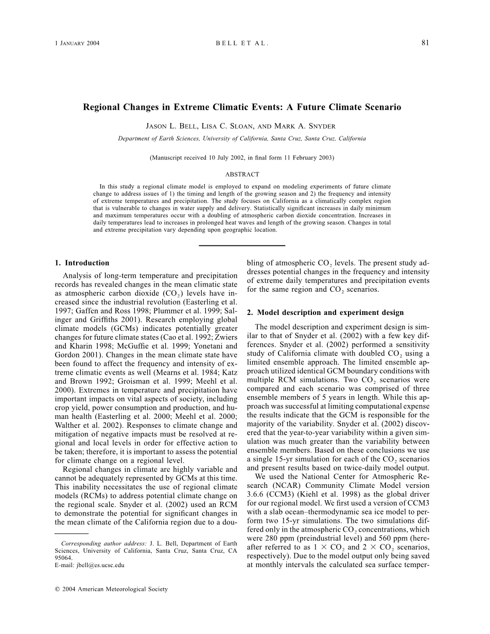 区域气候变化是高度可变的,目前尚不能由GCM(全球气候模式)充分模拟出来。 这中间存在的不可能性需要使用区域气候模式(RCM)来解决区域尺度上的潜在气候变化。 Snyder等人(2002)使用RCM来证明由于大气CO2水平加倍,加利福尼亚地区平均气候可能会有显著变化。 本研究旨在解决同一区域和同一CO2 含量情景下极端日温度和降水事件的频率和强度的可能变化情况。