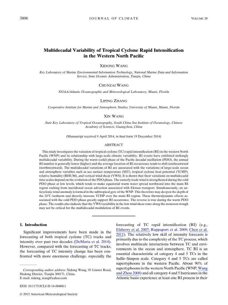 西北太平洋热带气旋快速增强的多年代际变化研究外文翻译资料