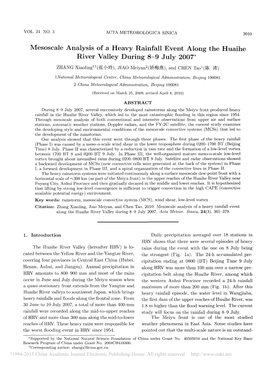 2007年7月8-9日沿淮河河谷的一次暴雨过程中尺度分析外文翻译资料
