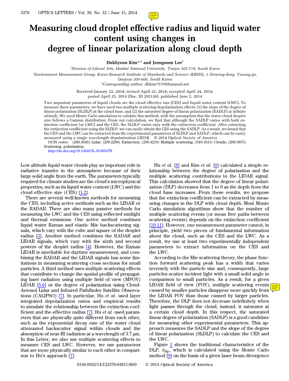 OCIS代码:(280.3640)激光雷达;(290.2200)消光;(290.4210)多次散射效应;(10.1615)云;(290.5855)散射、偏振。