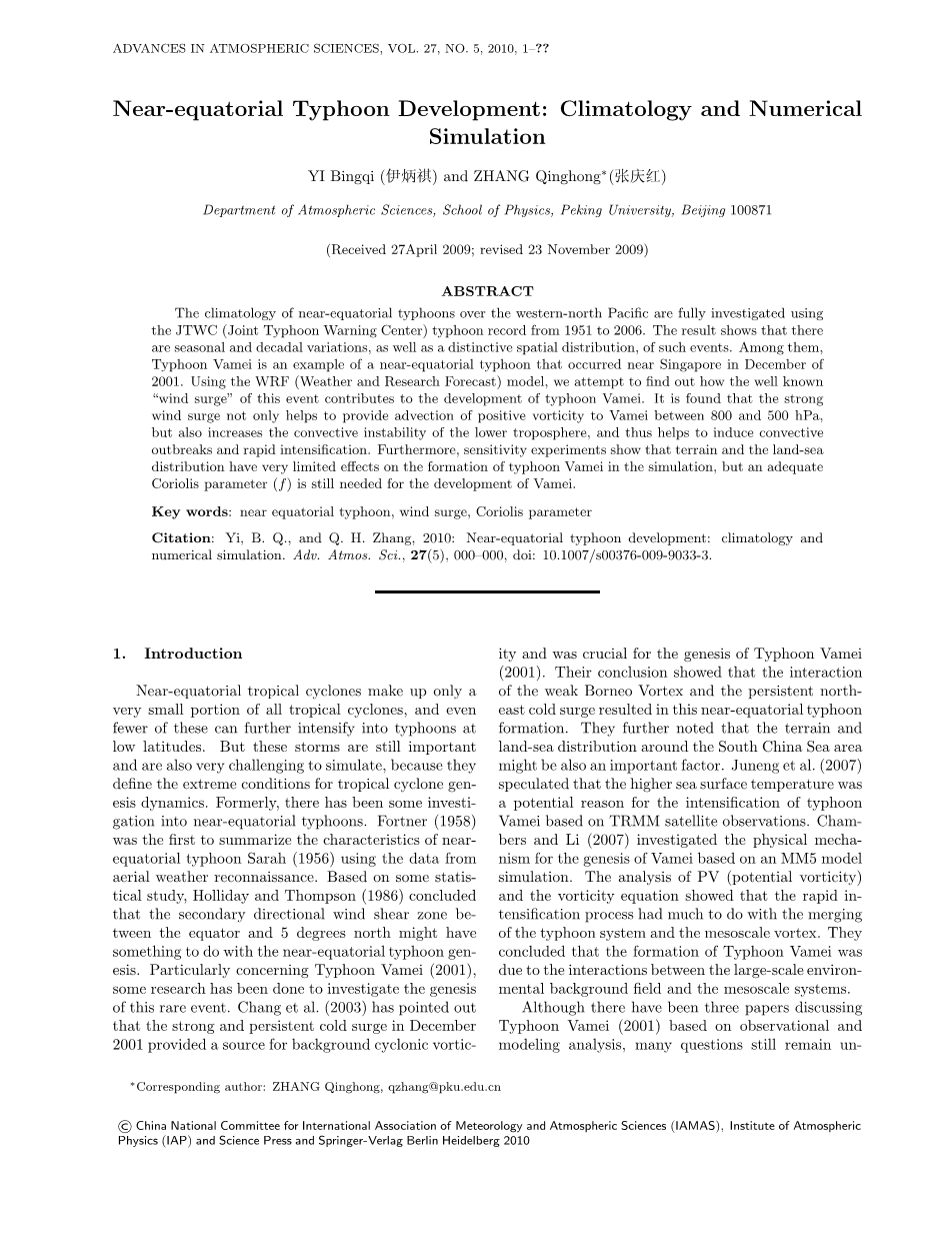 YI Bingqi and ZHANG Qinghong Department of Atmospheric Sciences, School of Physics, Peking University, Beijing 100871