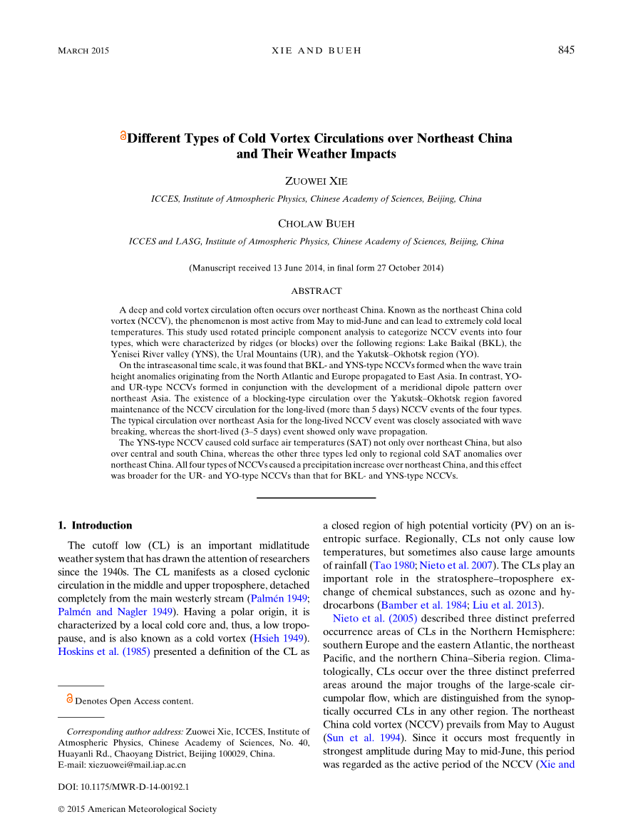 深层的冷涡环流常发生在中国东北地区。被誉为中国东北冷涡(NCCV),这种现象是最活跃的五月至六月中旬,并导致温度急剧下降。这篇文章用---来把东北冷涡分为四个类型,分类的区别是区域脊(或块):贝加尔湖(BKL),叶尼塞河流域(YNS),乌拉尔山脉(UR)和雅库茨克鄂霍茨克区(YO)。
