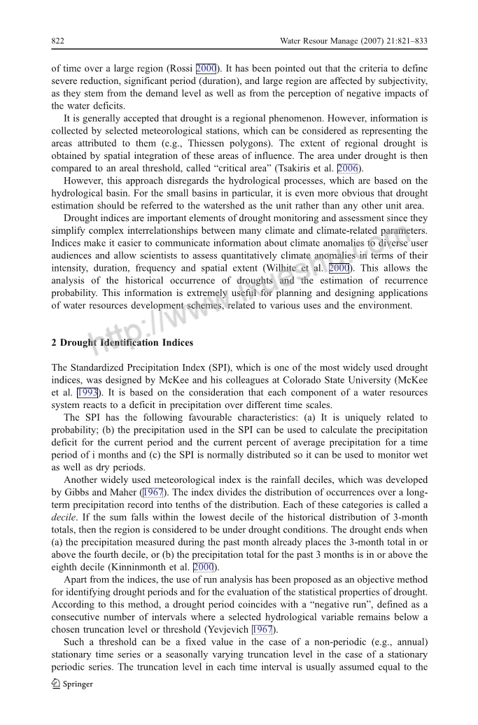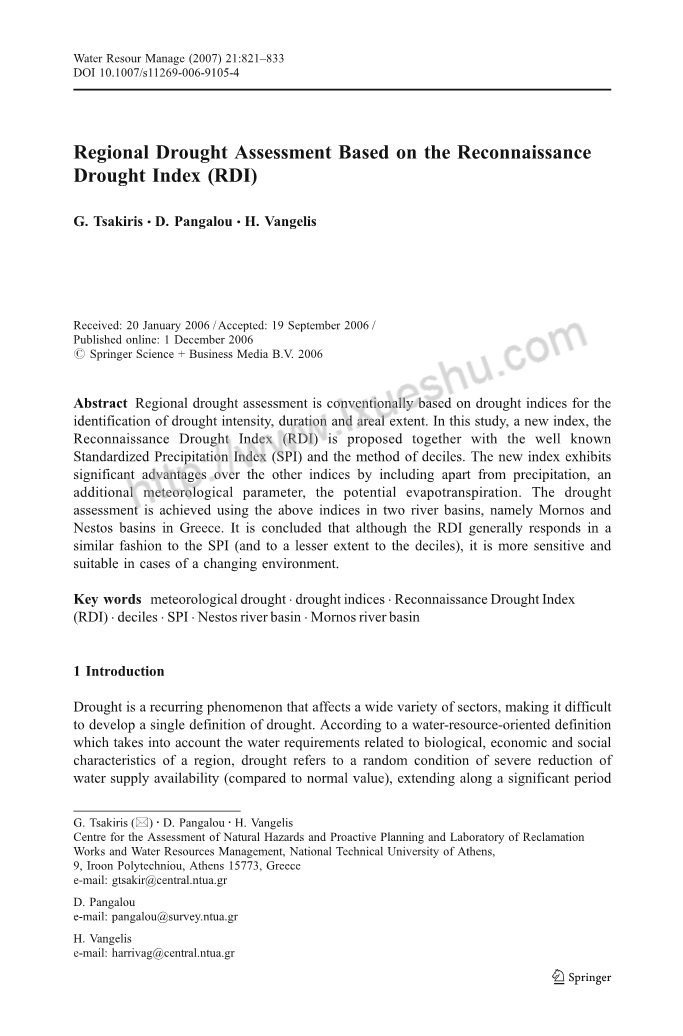 MEDROPLAN的协调会议(Tsakiris 2004)首次提出了一种新的侦察干旱识别和评估指标,而其他出版物则提出了更为全面的描述(Tsakiris和Vangelis 2005;Tsakiris et al. 2006)。