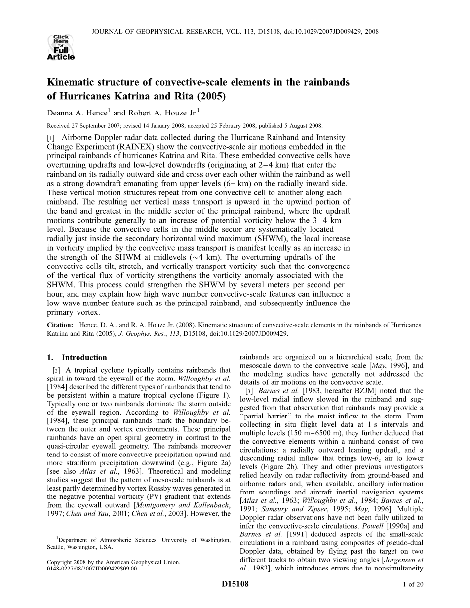 飓风卡特里娜和丽塔雨带 的对流尺度元素的运动学结构外文翻译资料