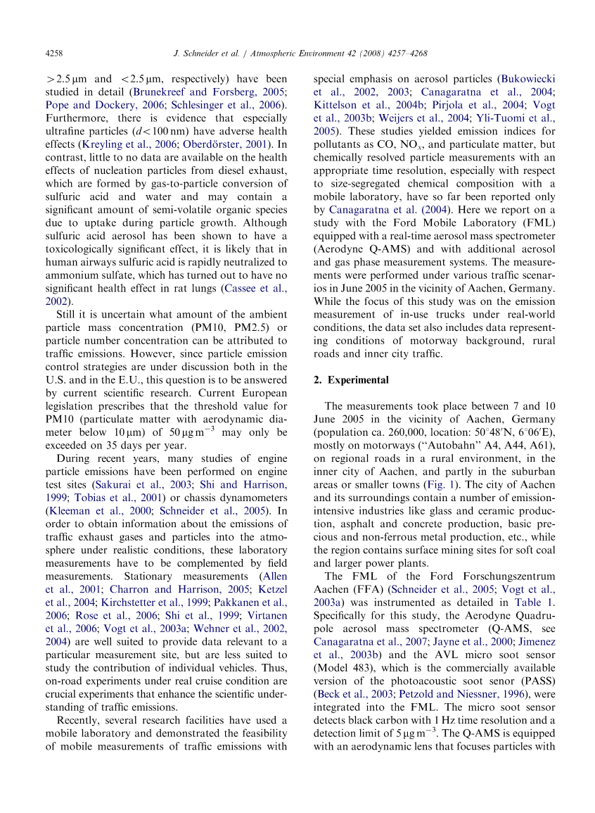 观测于2005年6月在德国亚琛附近的各种交通情况下进行。尽管本文的研究重点是行驶卡车在实际条件下的排放观测,但数据采集了高速公路、农村道路和市中心的背景条件。