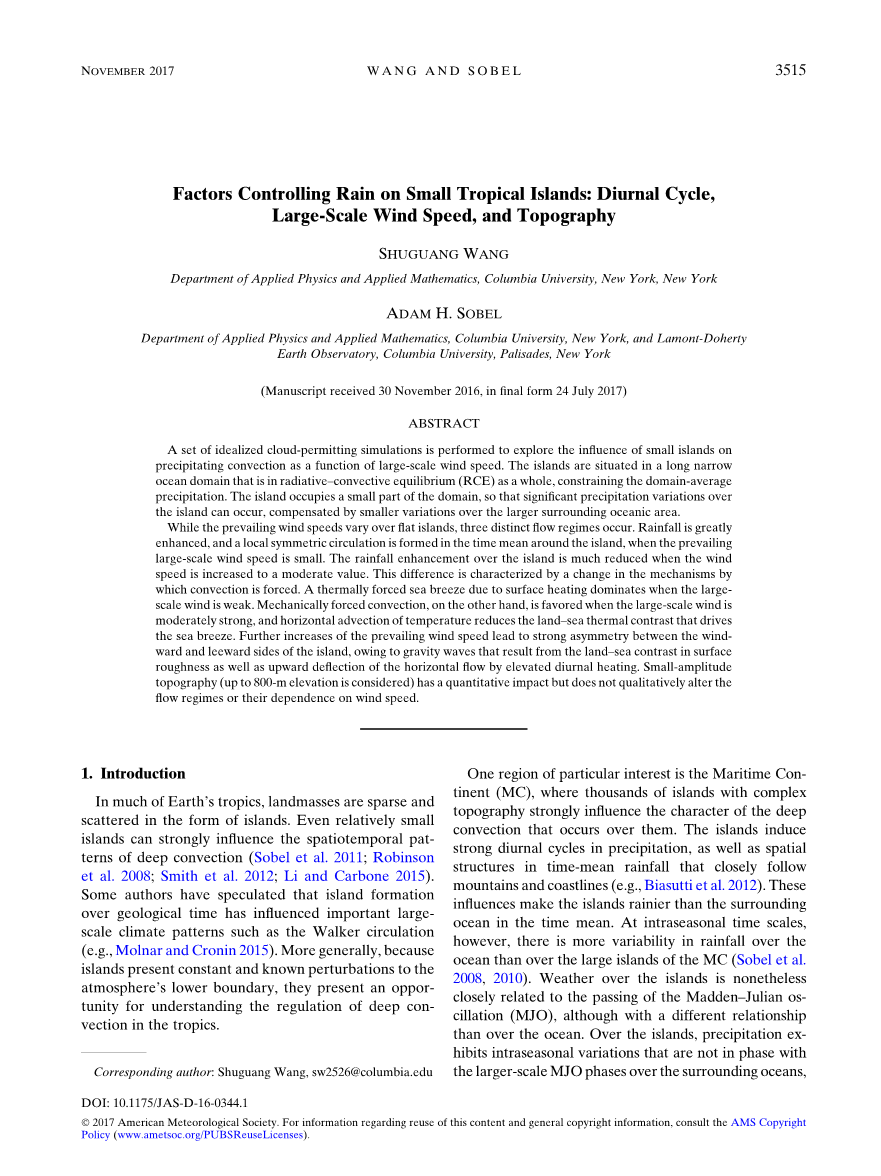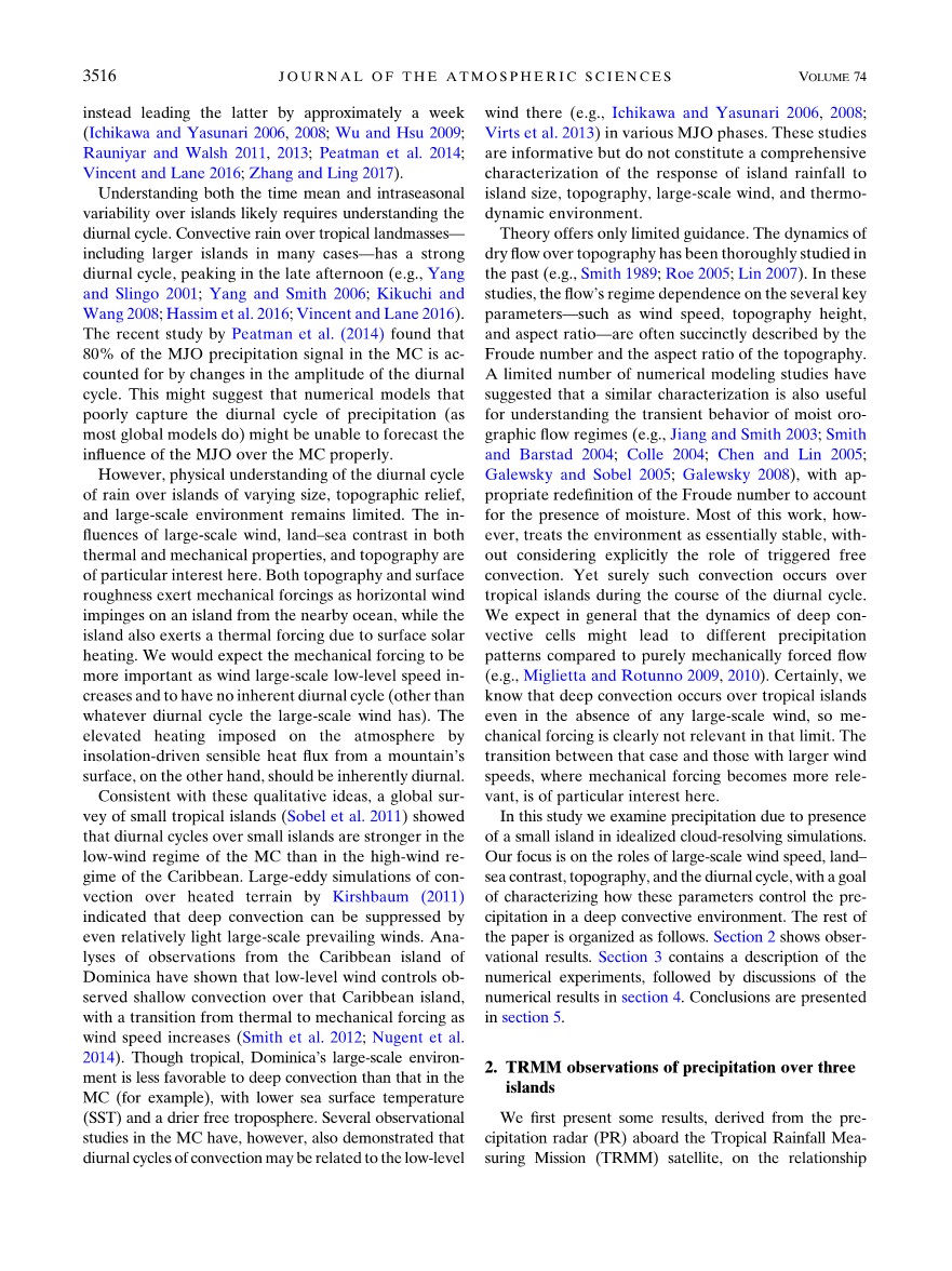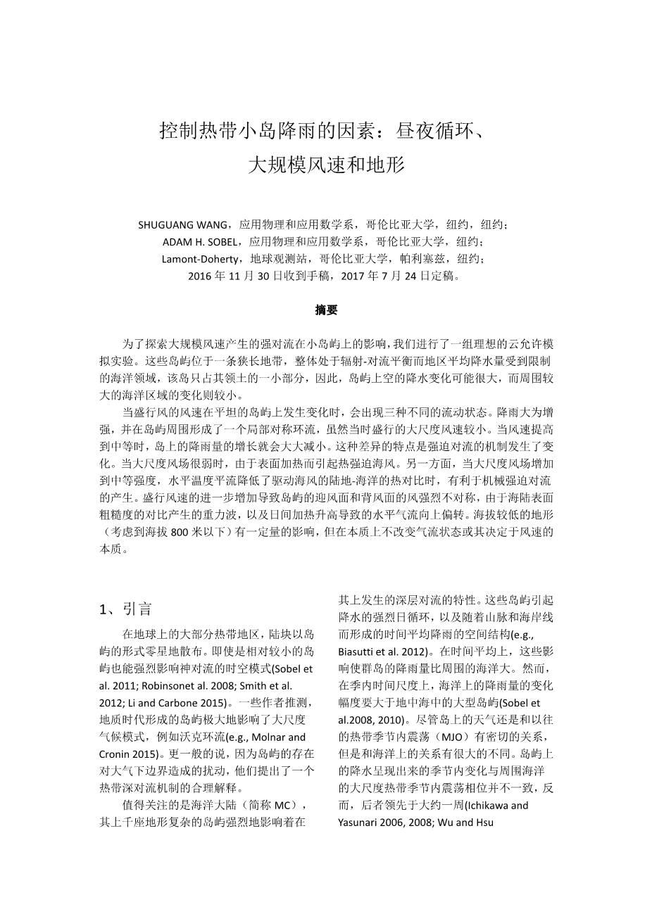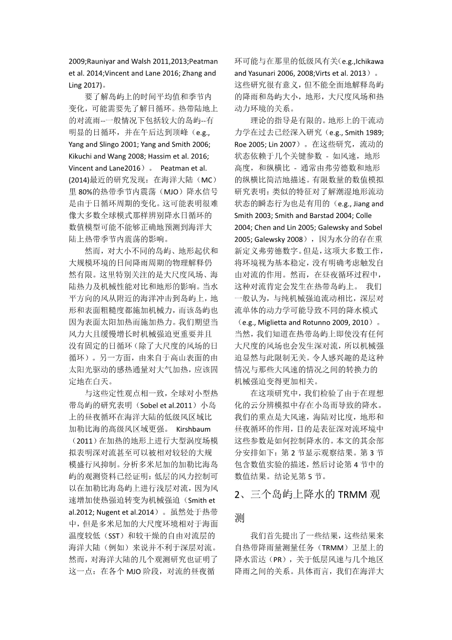 控制热带小岛降雨的因素:昼夜循环、 大规模风速和地形外文翻译资料