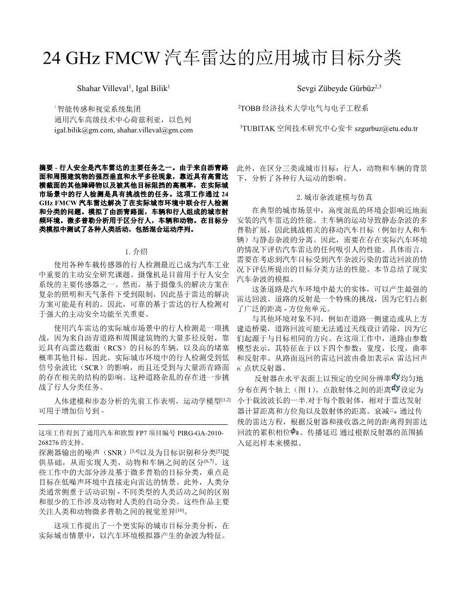 24GHzFMCW汽车雷达的应用城市目标分类外文翻译资料