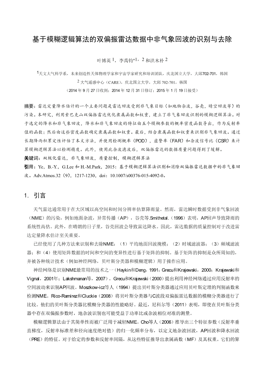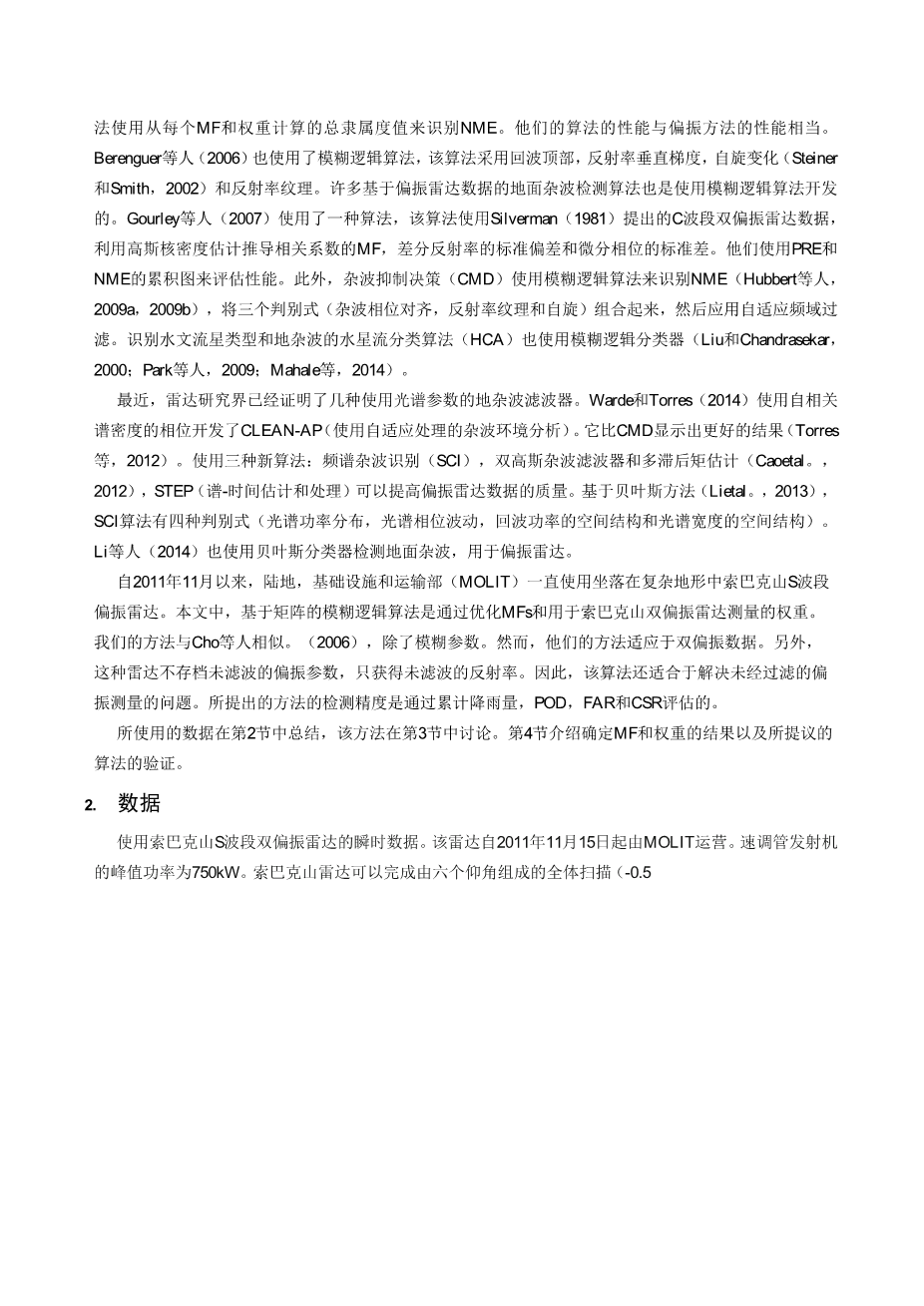 基于模糊逻辑算法的双偏振雷达数据中非气象回波的识别与去除外文翻译资料