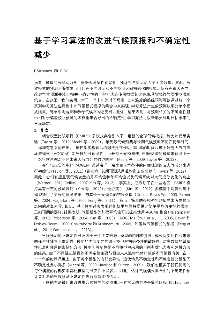 基于学习算法的改进气候预报和不确定性减少外文翻译资料