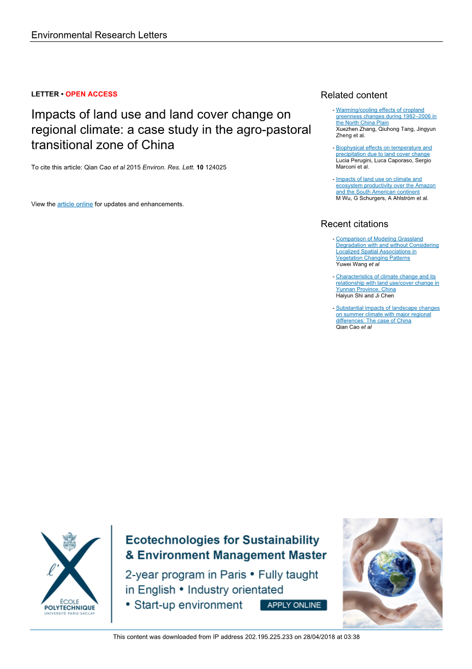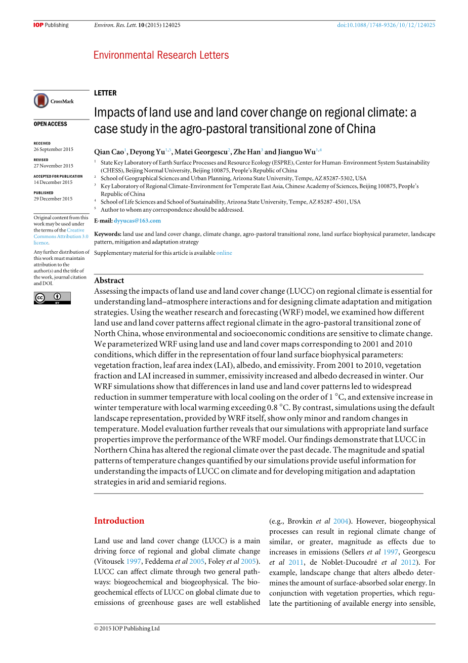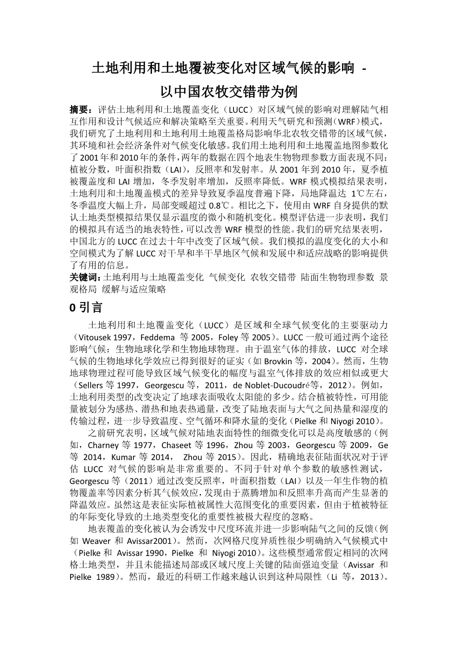 土地利用和土地覆被变化对区域气候的影响-以中国农牧交错带为例外文翻译资料
