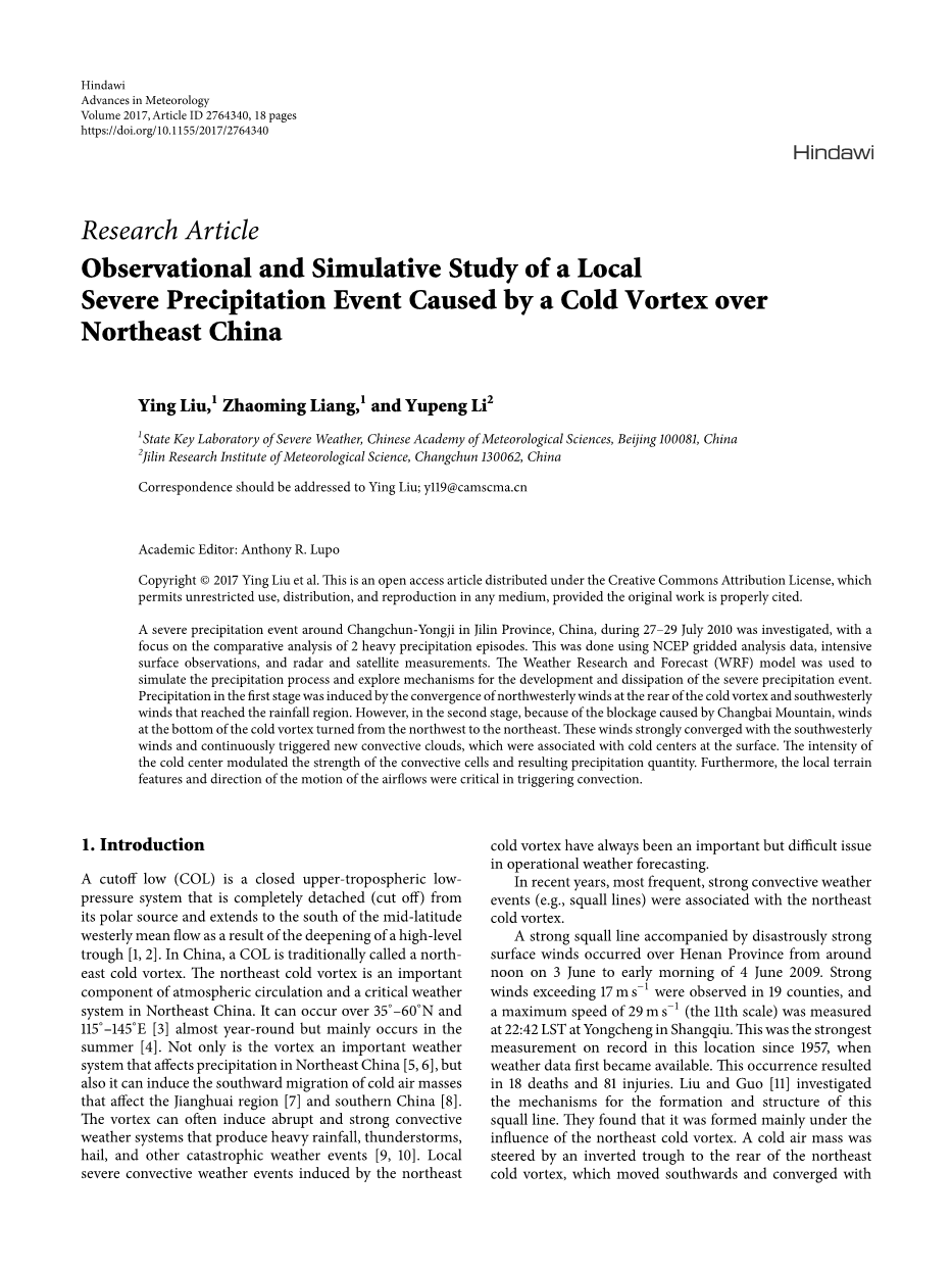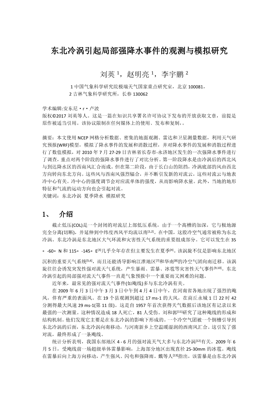 东北冷涡引起局部强降水事件的观测与模拟研究外文翻译资料
