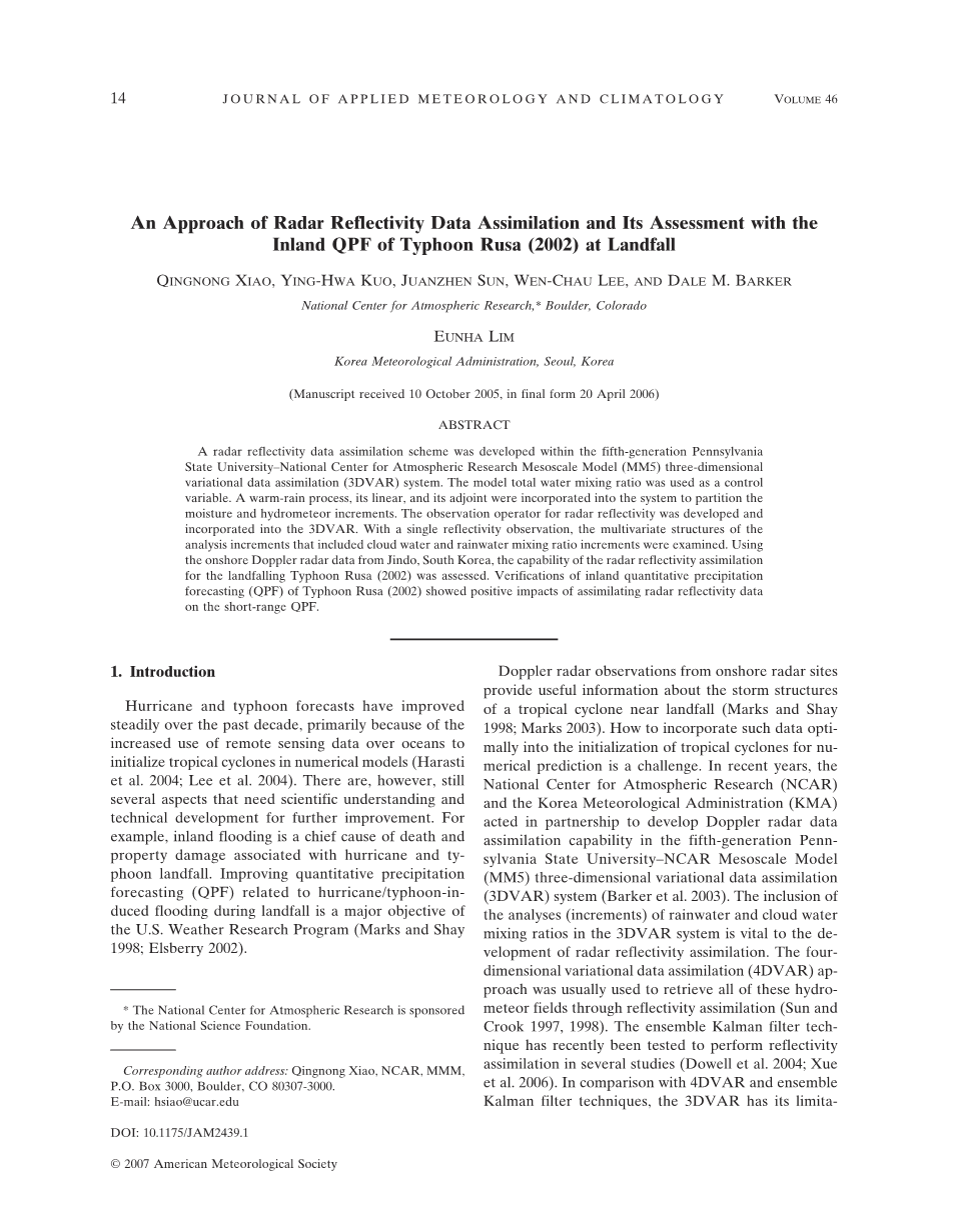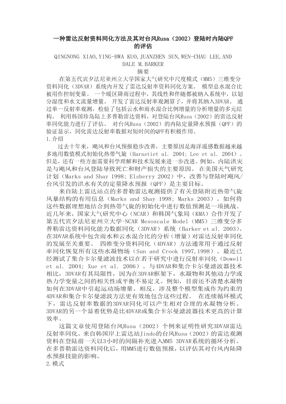 一种雷达反射资料同化方法及其对台风Rusa (2002) 登陆时内陆QPF的评估外文翻译资料