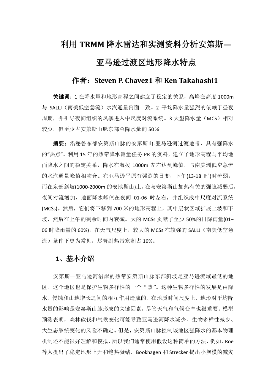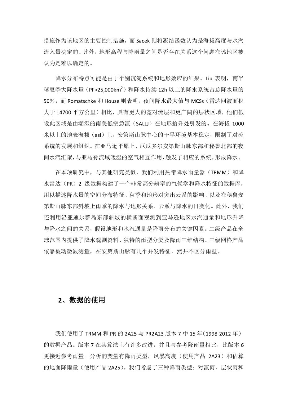 利用TRMM降水雷达和实测资料分析安第斯——亚马逊过渡区地形降水特点外文翻译资料