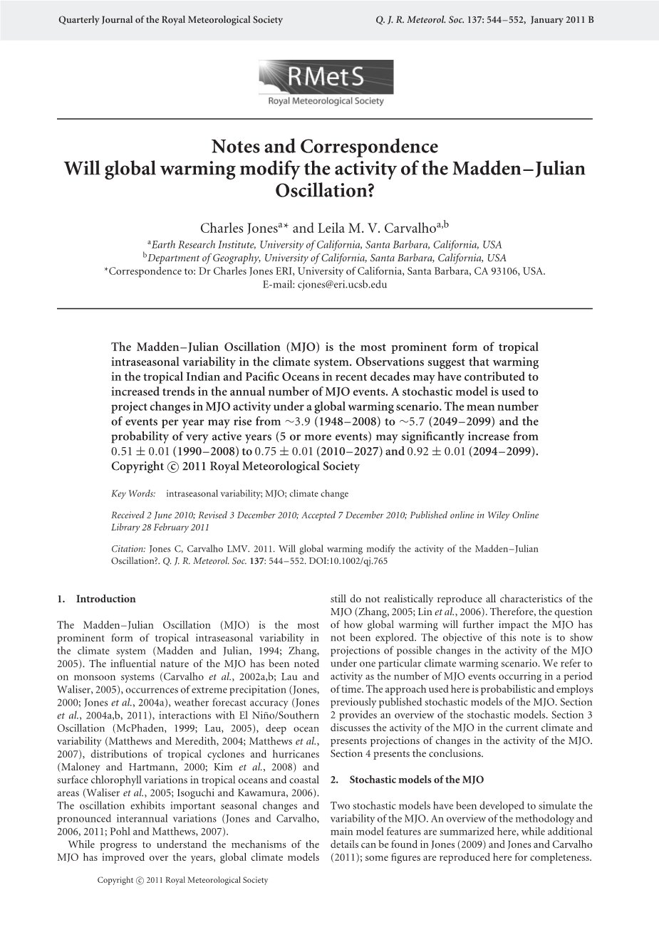 全球变暖是否会改变MJO的活动?外文翻译资料