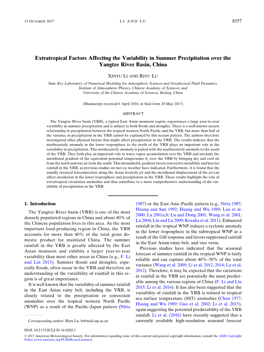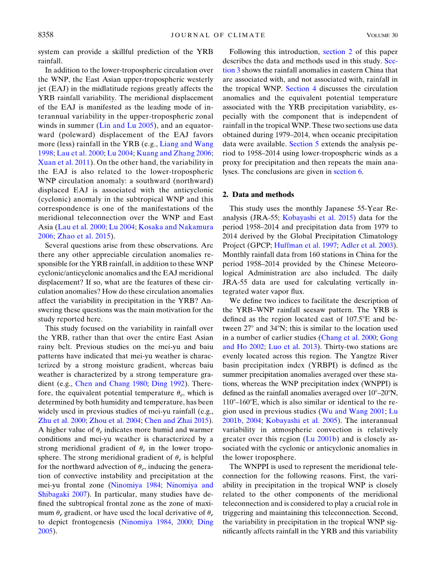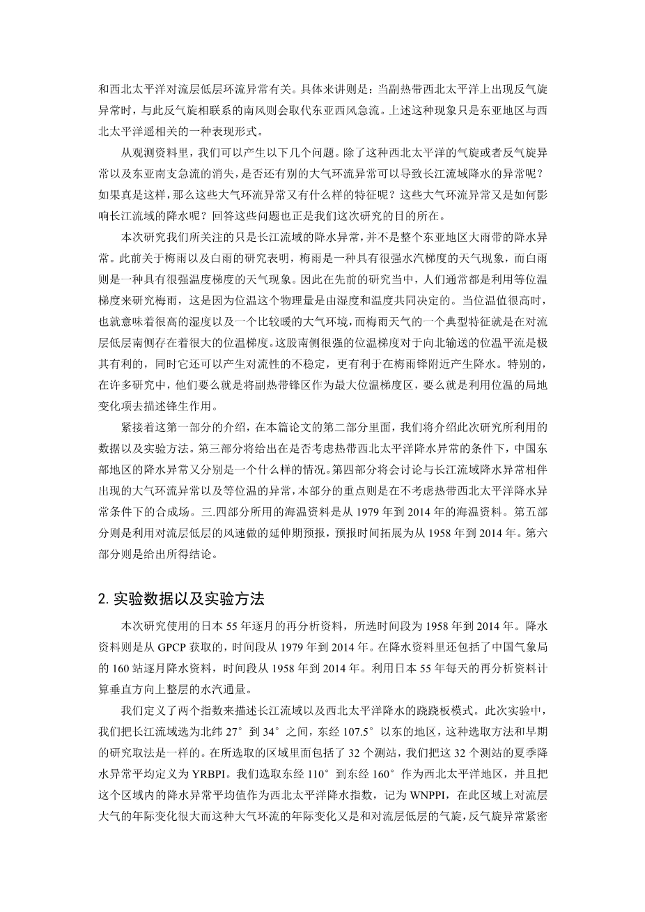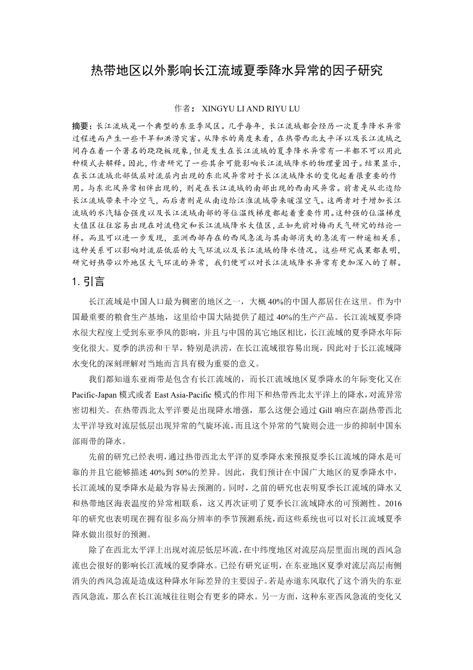 热带地区以外影响长江流域夏季降水异常的因子研究外文翻译资料