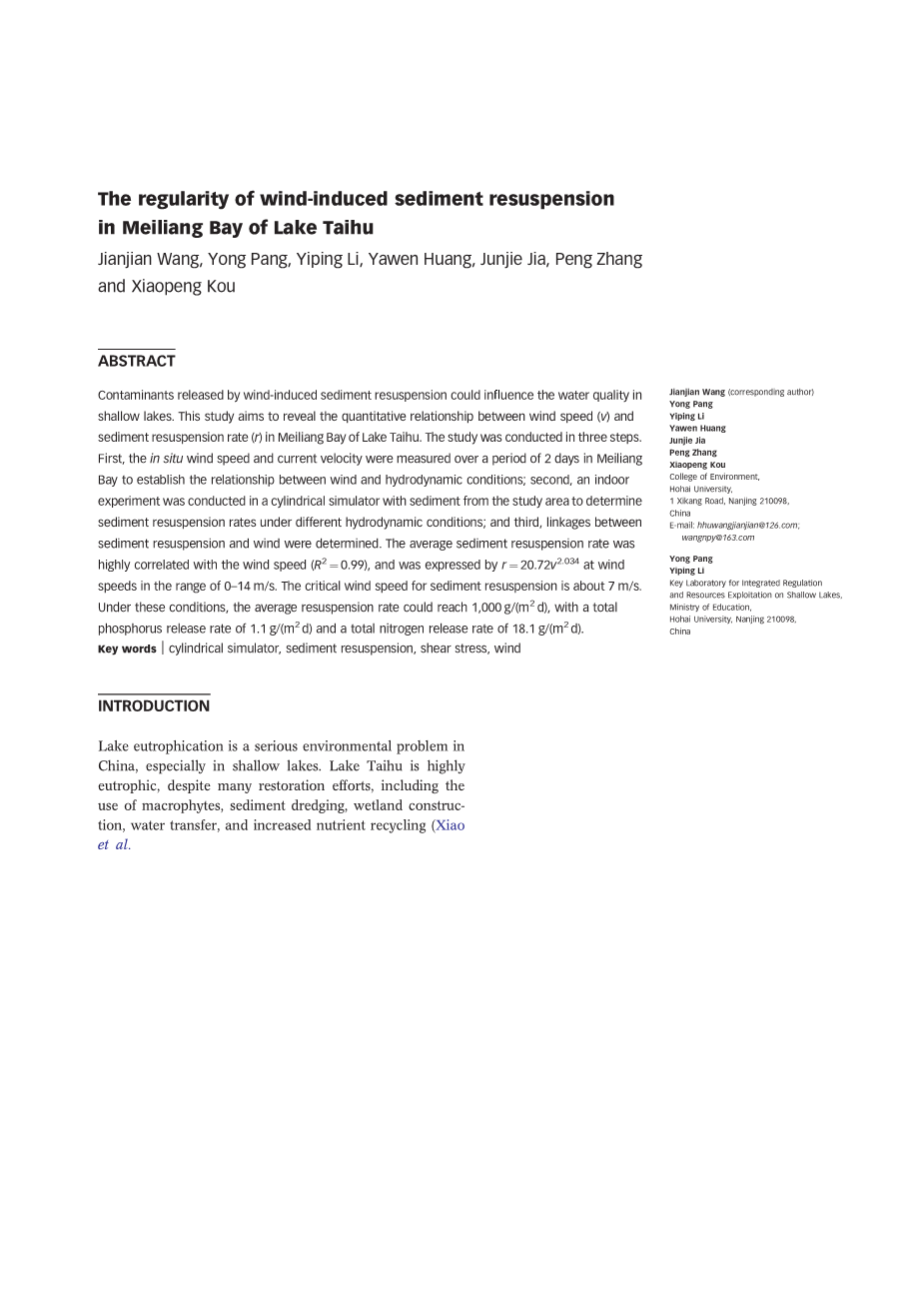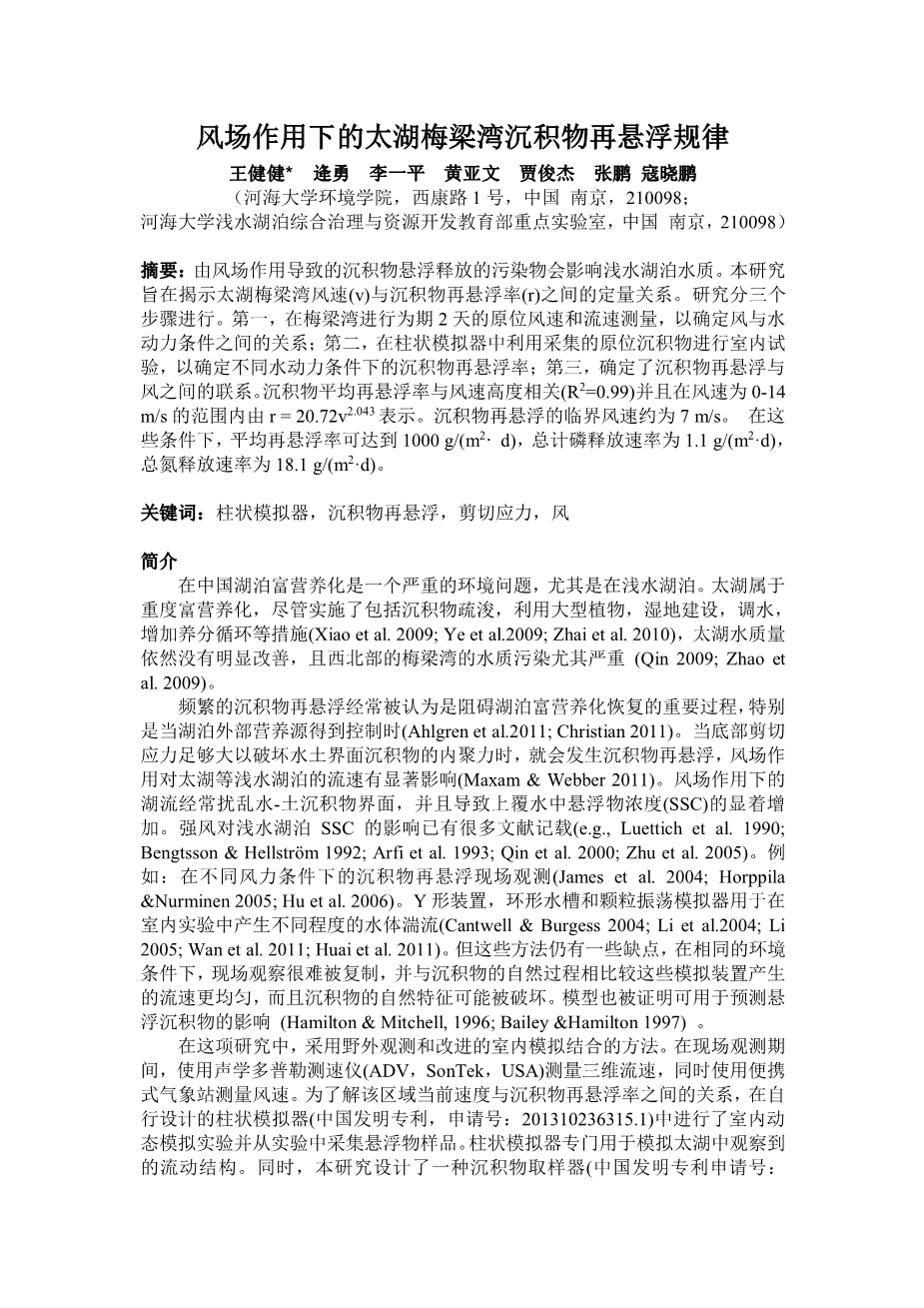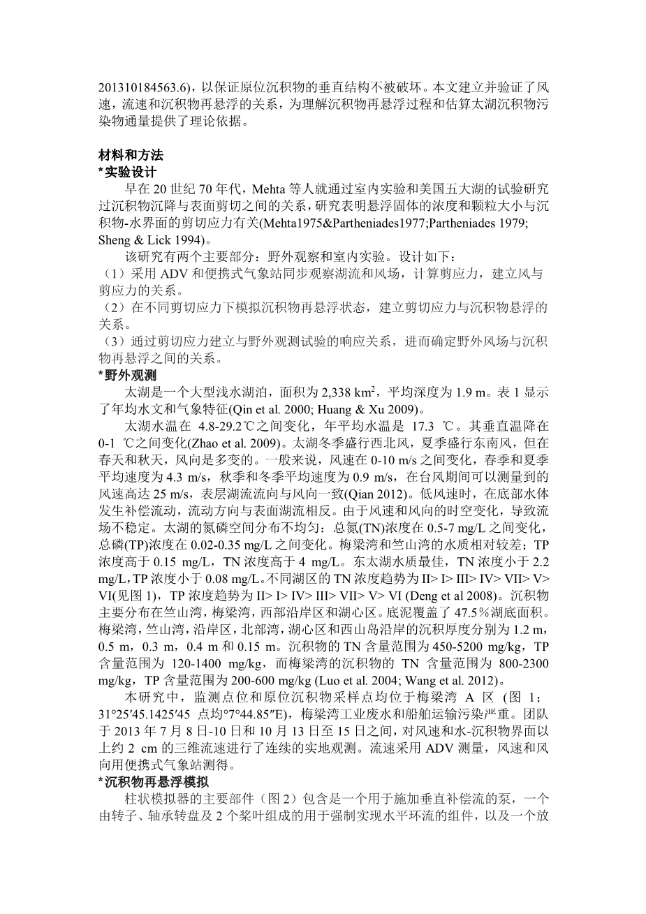 风场作用下的太湖梅梁湾沉积物再悬浮规律外文翻译资料