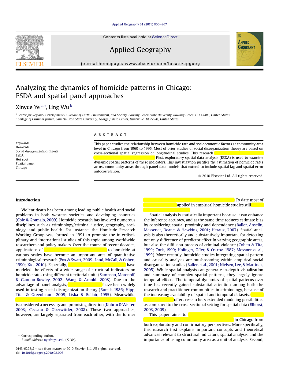 分析芝加哥的谋杀模式:ESDA和空间平面方法外文翻译资料