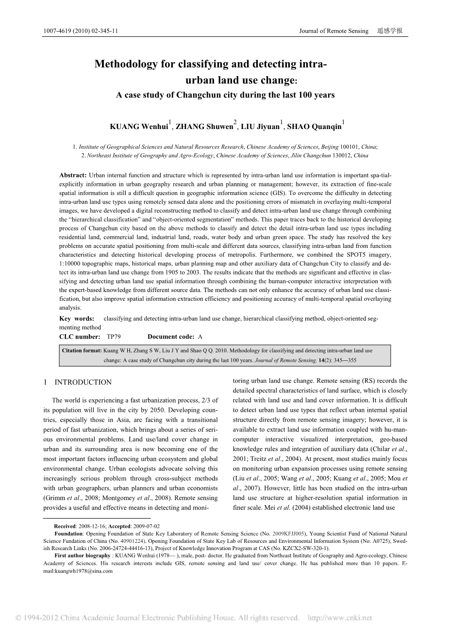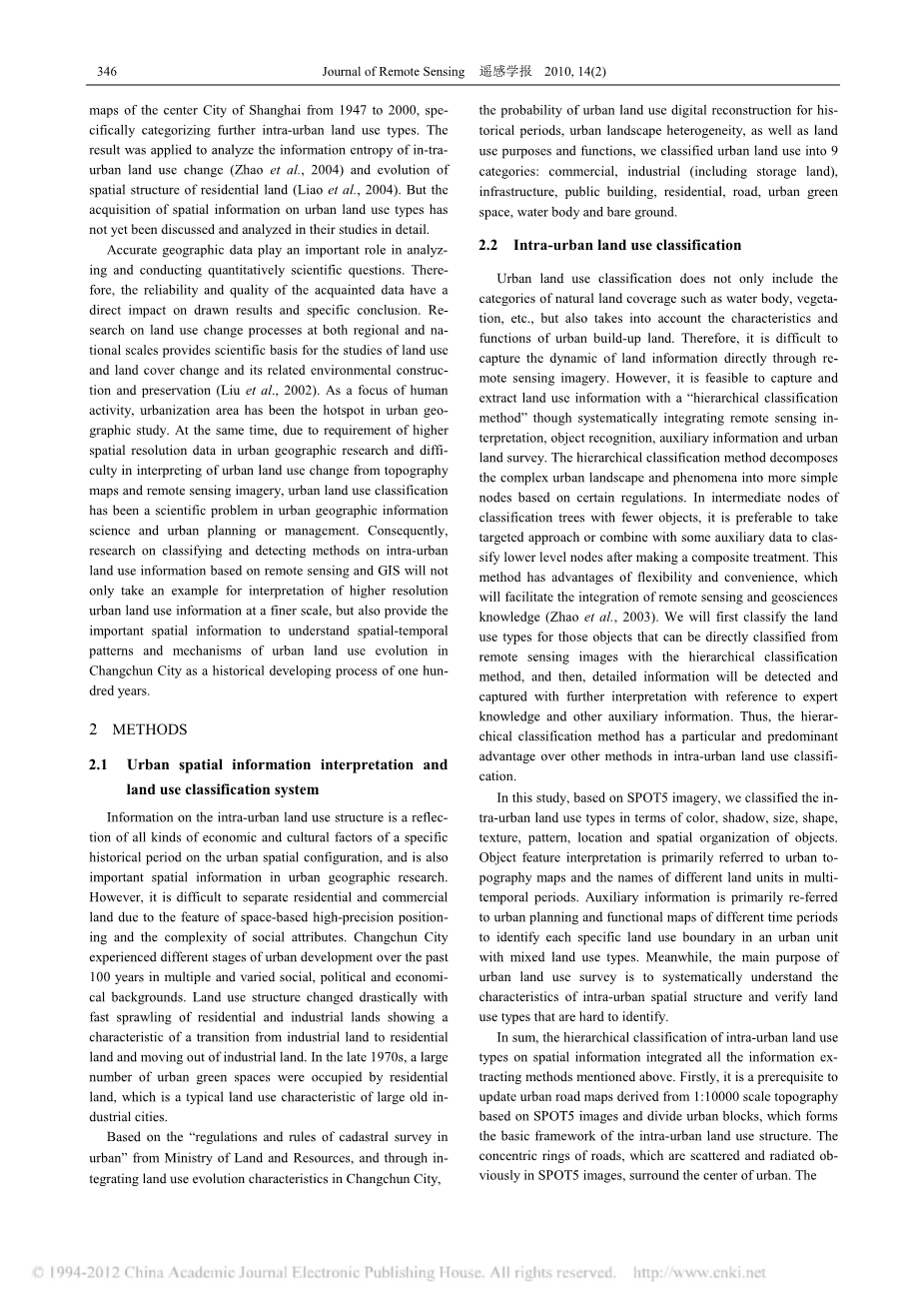 世界正在经历一个快速的城市化进程,2050年,三分之二的人口将生活在城市中。发展中国家,尤其是亚洲,都面临着一个快速城市化的过渡时期,这带来了一系列严重的环境问题。城市及其周边地区土地利用/土地覆盖变化已成为影响城市生态环境和全球环境变化的重要因素之一。城市生态学家城市规划师和城市经济学家主张通过与城市地理学的交叉学科方法解决这个日益严重的问题。遥感提供了一个有用的检测和监测的有效手段—城市土地利用变化监测。遥感记录了土地利用和土地覆盖信息与土地利用和土地覆盖信息密切相关的地物光谱特征。它很难直接从遥感影像检测到城市土地利用类型来反映城市内部空间结构;然而,它可以提取土地利用信息,再加上无人机交互式可视化解释、地质基础知识规则和辅助数据集成。目前,大多数的研究主要集中在监测城市扩展过程中使用遥感,然而,在更精细尺度的高分辨率空间信息中,对城市内的土地利用结构进行了研究。建立电子土地用途从1947到2000的上海中心城区地图,明确分类进一步城市内部土地利用类型。对结果进行的城市土地利用变化信息和住宅用地空间结构演变。但对城市土地利用类型的空间信息的获取还没有详细的讨论和分析。