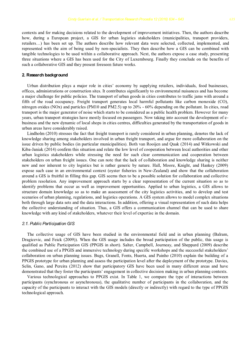 为了回答这个问题(一),我们考虑到传播和困难汇总城市货运相关数据等挑战。艾伦,安布罗西尼,布朗,帕捷,鲁蒂埃和伍德伯恩(2014)认为需要规范数据收集方法。知识结构需要数据质量改进的重要工作。在提高认识和传播方面,萨德和林纳(2009)认为,“实现成功的PPGIS的关键特征包括问题明确,地方知识发展,战略行动者关系和增加问题解决”。