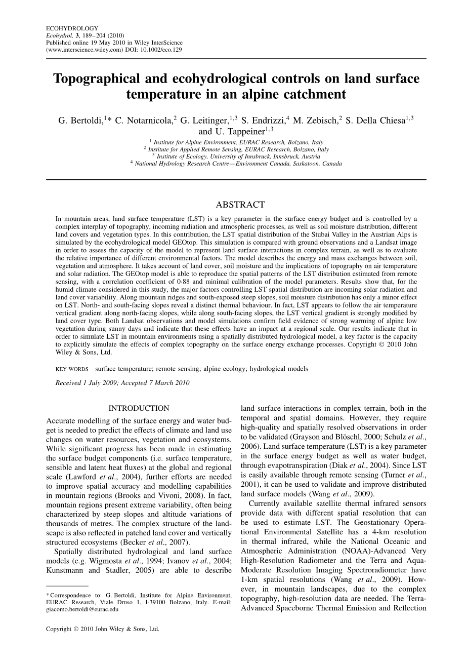 作者:G. Bertoldi,1* C. Notarnicola,2 G. Leitinger,1,3 S. Endrizzi,4