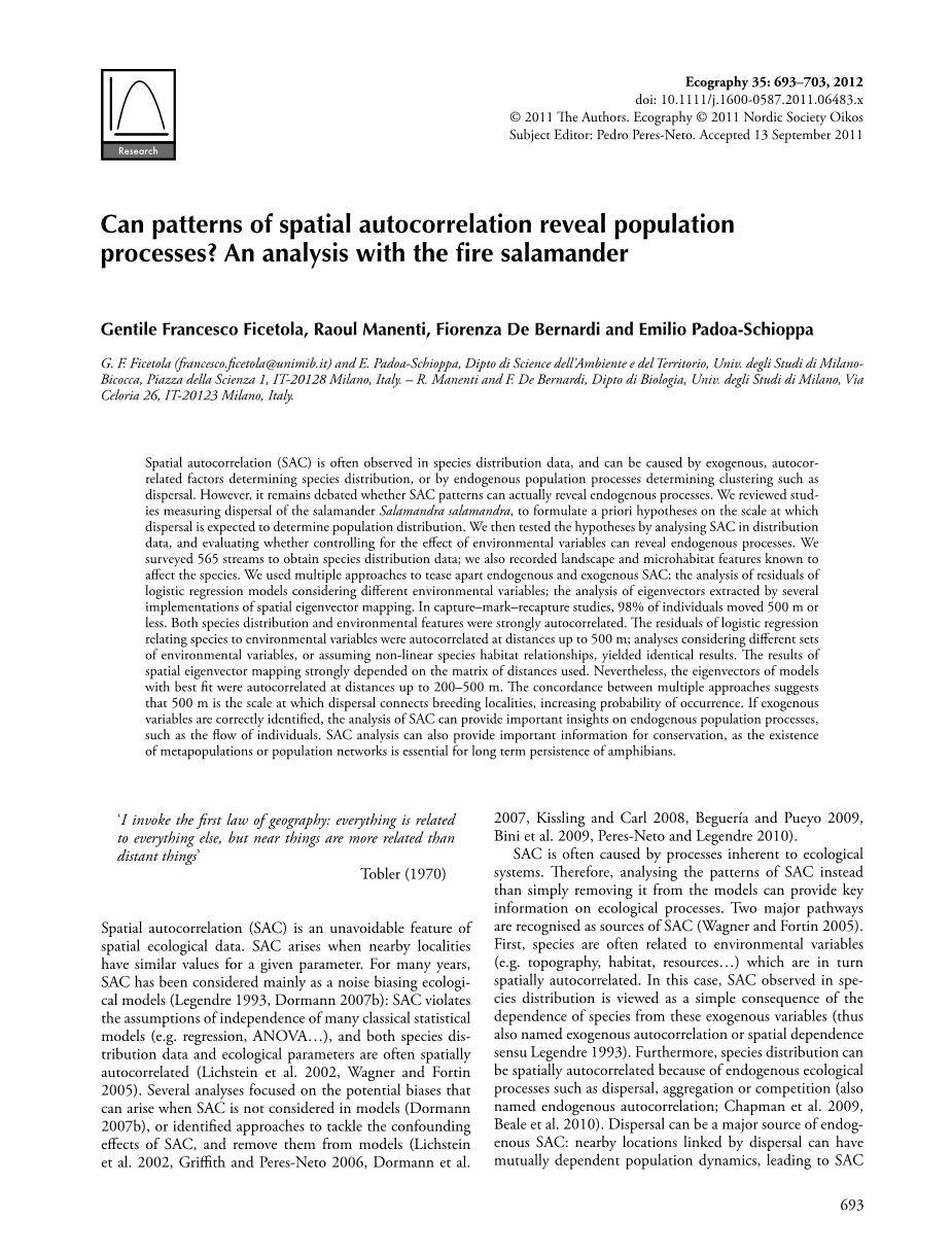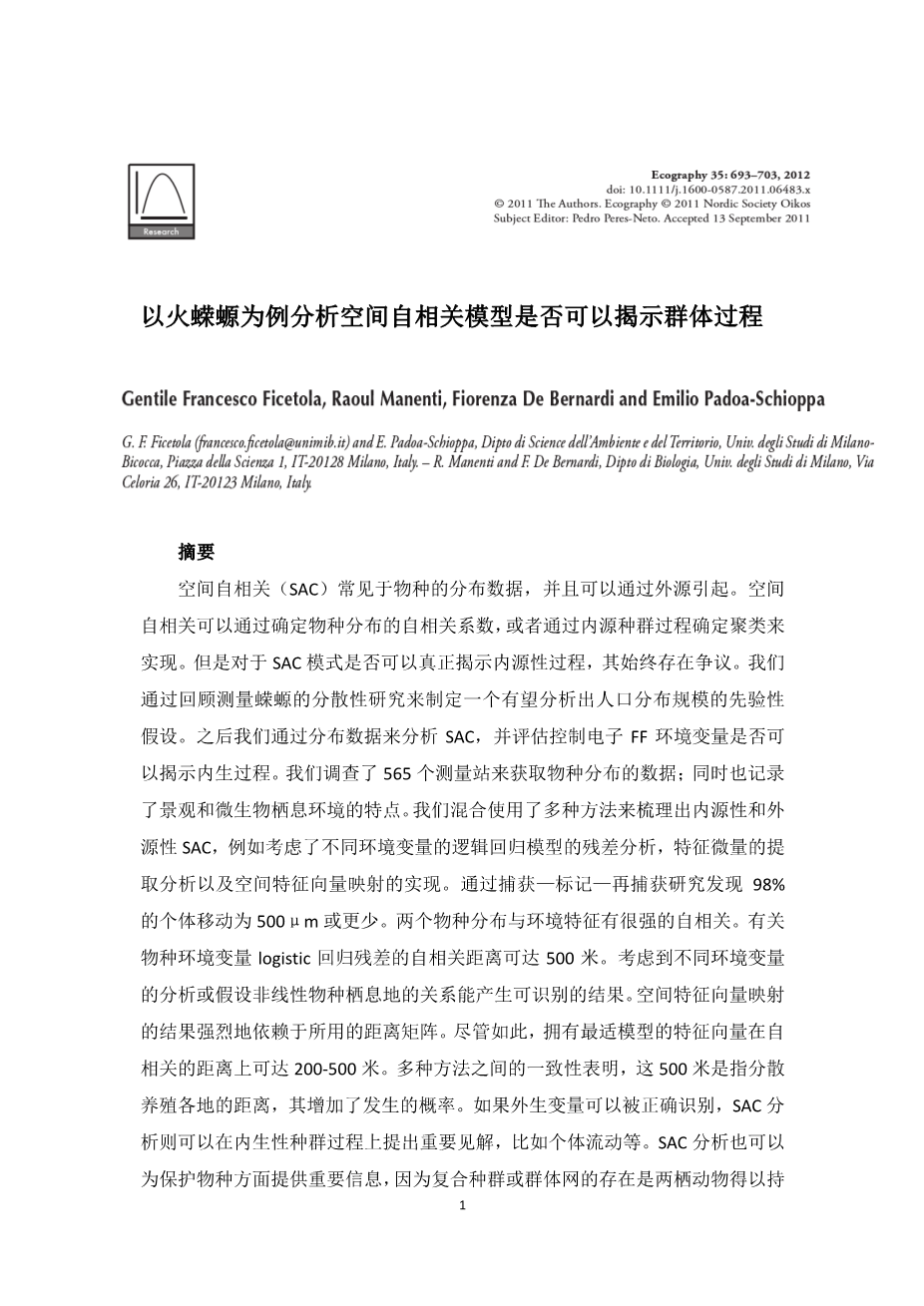以火蝾螈为例分析空间自相关模型是否可以揭示群体过程外文翻译资料
